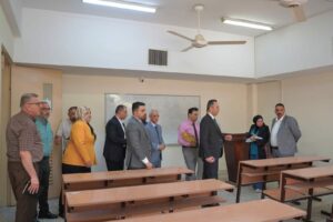 Representing our esteemed University President, Dr. Alyaa Abbas Ali Al-Attar, Assistant President for Scientific Affairs, Dr. Omar Rafie Mahmoud, warmly welcomed the Ministerial Committee tasked to facilitate establishing the College of Information Technology with three departments at Mosul Technical Institute. Accompanied by the Assistant President for Scientific Affairs, the Dean of Mosul Engineering College, the Dean of Mosul Technical Institute, their deputies, and the Director of the Studies and Planning Department at the University Presidency, Dr. Thaer Faiz Ahmed. The committee took a tour to observe the facilities, examining logistical arrangements and requirements for the establishment, including rooms, halls, laboratories, equipment, classrooms, departments, administrative units, and expressed satisfaction with the preparations made. They also provided constructive feedback aimed at enhancing the project’s development.