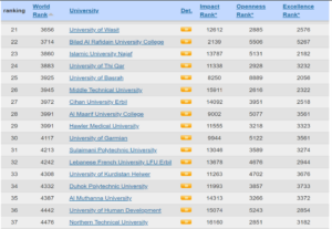 فقد أحتلت جامعتنا المرتبة 37 محلياً والمرتبة 4476 عالمياً كما موضح في الصورة ادناه.