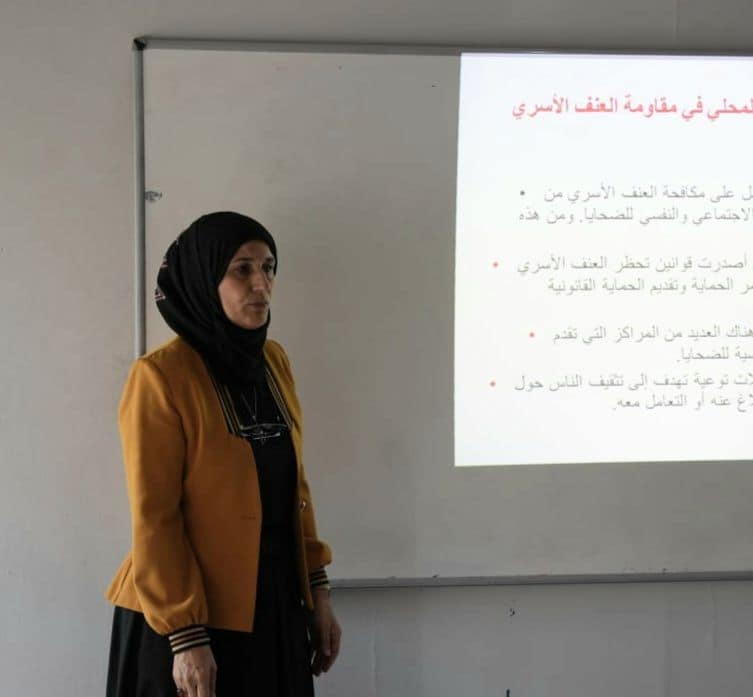 ١. تنظيم ورش عمل ومحاضرات لتعريف المجتمع بمخاطر العنف الأسري وطرق مواجهته .