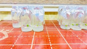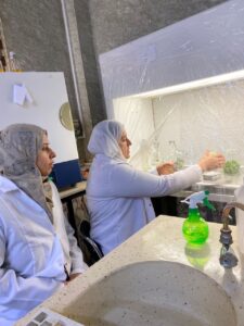 تم تحضير وسط MSالقياسي ويسعد تعليمه ،اخذت أجزاء نباتية من بعض النباتات وأجريت عليها عمليات تعقيم بخطوات محددة ثم زرعت في الوسط المعد مسبقا وتم حفظ للزروعات في غرفة التنمية التابعة المختبر.