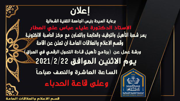 إعلان عن اقامة ورشة يوم الاثنين الموافق 2021/2/22….