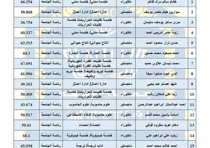 يعلن قسم الدراسات العليا في رئاسة الجامعة التقنية الشمالية نتائج الترشيح الأولي لمنسوبي جامعتنا للإجازات الدراسية للعام الدراسي 2021/2022، وإعطاء فترة أسبوع من تاريخ إعلان نتائج الترشيح للإجازات الدراسية لتقديم طلبات الاعتراضات على الترشيح استناداً الى الفقرة (12) من ضوابط المنظومة الالكترونية للإجازات الدراسية للعام الدراسي 2021/2022، على أن ترد الاعتراضات الكترونياً عبر الرابط “https://forms.gle/RLxrm6ZhAABgUxp58 “.