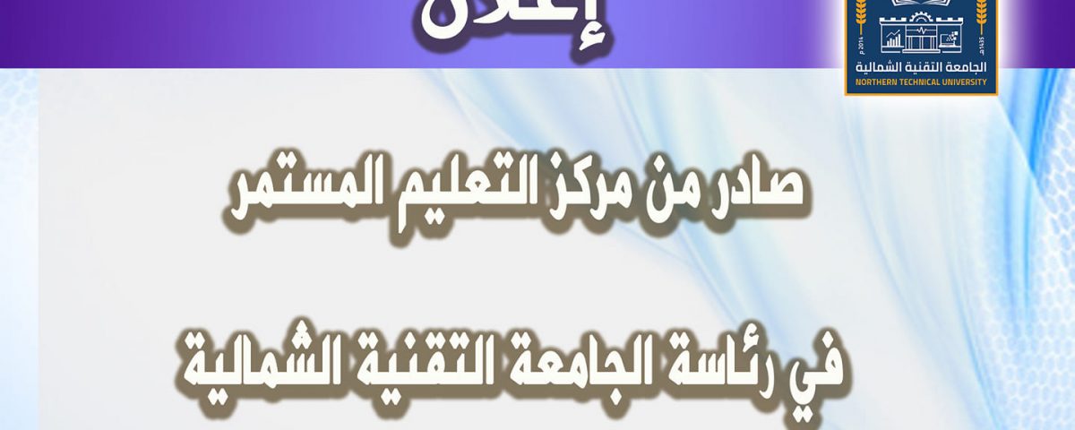 يعلن مركز التعليم المستمر في رئاسة الجامعة التقنية الشمالية عن بدء التسجيل لدورة كفاءة اللغة الانكليزية الإلكترونية واختبار اللغة العربية الوجبة السادسة التي ستبدا يوم الاحد المصادف 2021/03/07 وللتسجيل بالدورة اعلاه باستخدام المنصة التعليمية google classroom يرجى فتح الاستمارة الالكترونية من خلال الرابط التالي :
