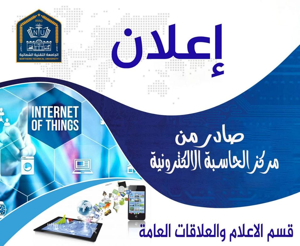 يعلن مركز الحاسبة الالكترونية في رئاسة جامعتنا عن اقامة دورة كفاءة الحاسوب الخامسة للمتقدمين الى للدراسات العليا للمدة من 14/2/2021 ولغاية 18/2/2021 يكون الدفع مباشر او تحويل المبلغ على الماستر كارد ذات الرقم 5285780017946155