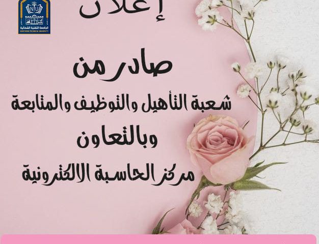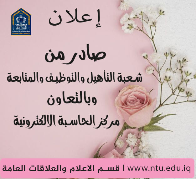 يسر شعبة التأهيل والتوظيف والمتابعة وبالتعاون مع مركز الحاسبة الإلكترونية في رئاسة جامعتنا ان يعلن عن اقامة ورشة عمل عن: