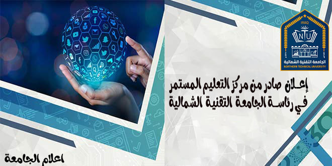 يعلن قسم المكتبة المركزية وبالتعاون مع مركز التعليم المستمر في رئاسة الجامعة التقنية الشمالية عن أقامه دورة بعنوان ( أسبوع المكتبة الرقمية) للمدة من 2021/1/10 ولغاية […]
