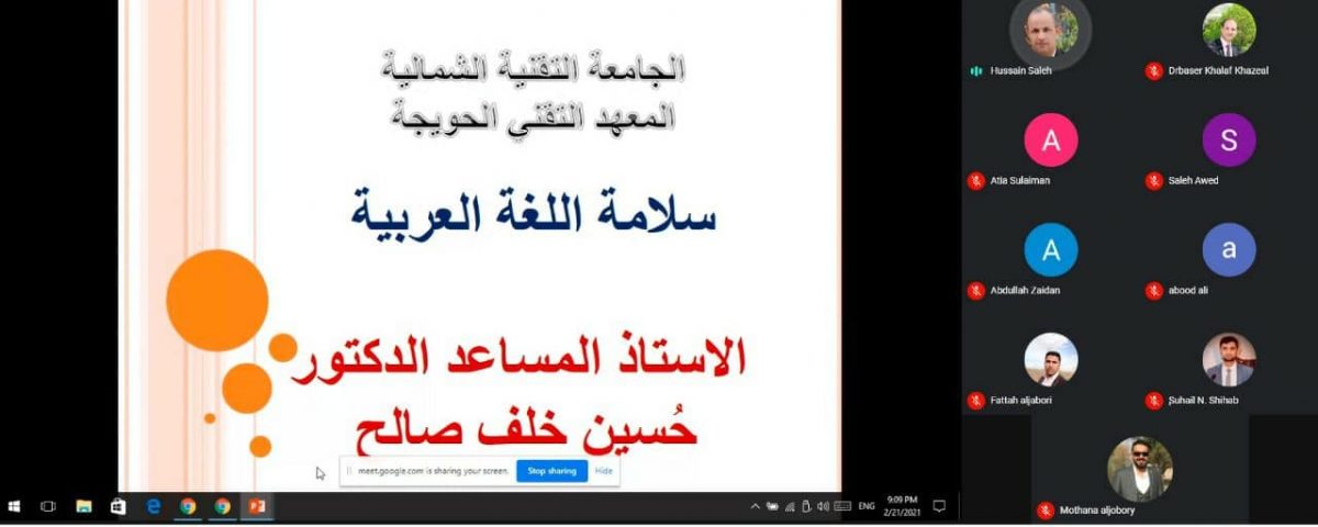أختتم قسم تقنيات إدارة المكتب في المعهد التقني الحويجة الدورة الإلكترونية وعبر منصة(Meet) عن(سلامة اللغة العربية )