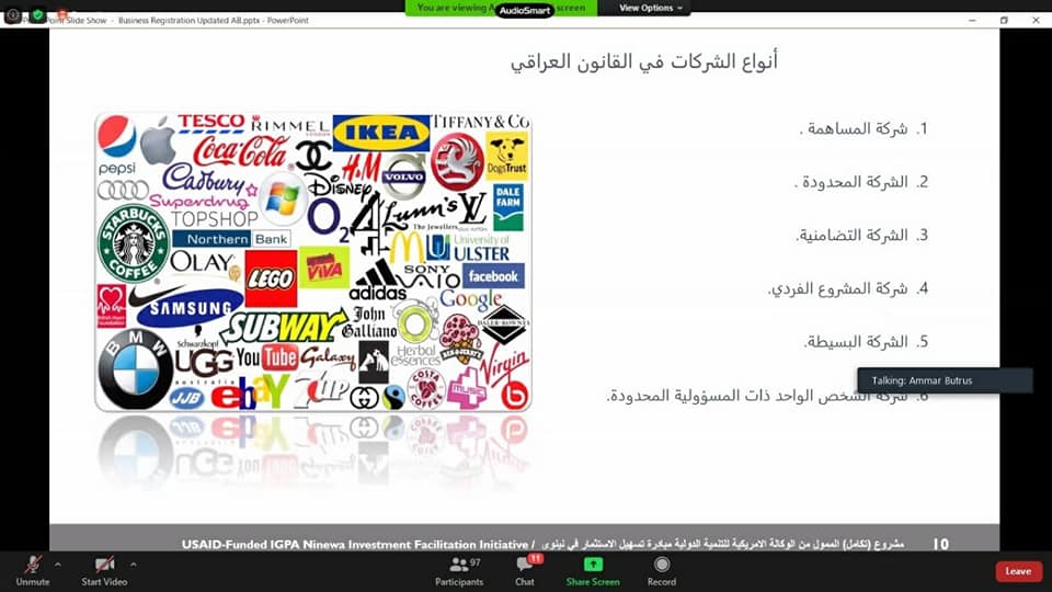 شعبة التأهيل والتوظيف والمتابعة بالمشاركة في أفتتاح البرنامج التدريبي الخاص بمبادرة بتطوير الاستثمار في نينوى ضمن برنامج تكامل الممول من قبل منظمة (USAID) وبالتعاون مع الجامعة التقنية الشمالية وللمدة من 7 /2 ولغاية 2021/2/17