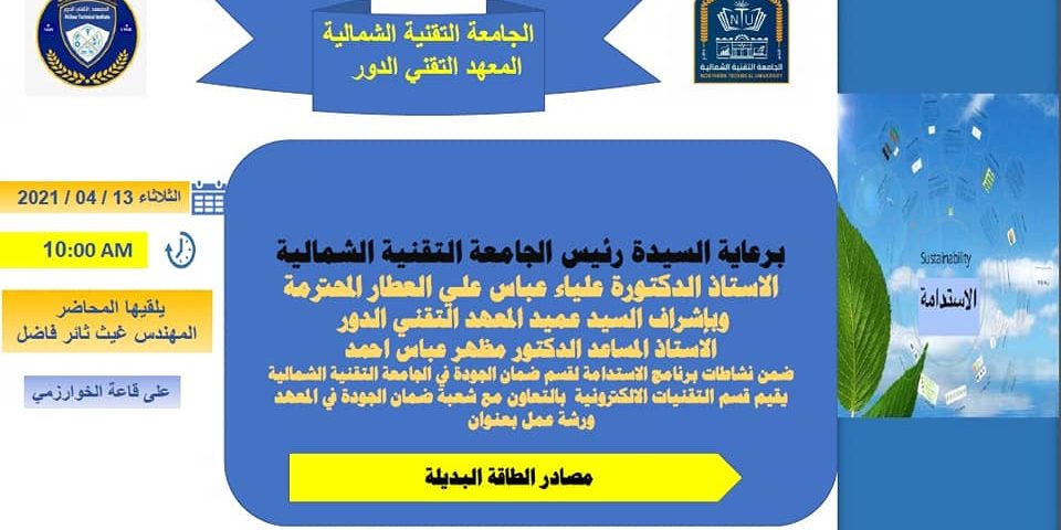 برعاية السيدة رئيس الجامعة التقنية الشمالية الاستاذ الدكتورة علياء عباس العطار وباشراف