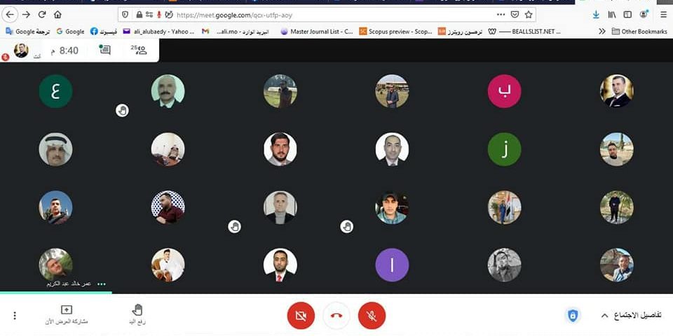 نظم قسم تقنيات الانتاج الحيواني ورشة عمل لطلبة المرحلة الاولى وللدراستين الصباحية والمسائية حول كيفية الدخول على الgoogle meet و google form عن طريق الايميل الجامعي،