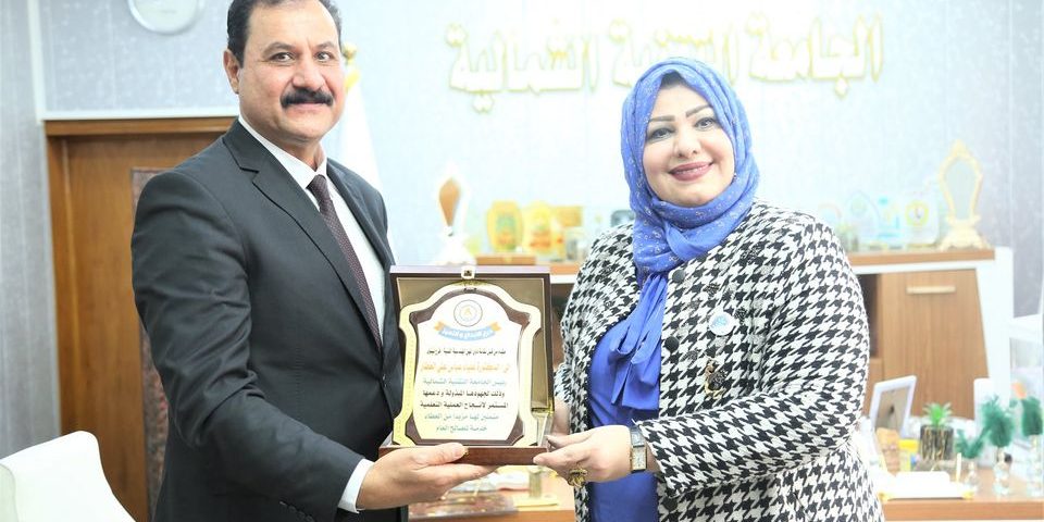استقبلت السيدة رئيس الجامعة التقنية الشمالية الأستاذ الدكتورة علياء عباس علي العطار وفداً من نقابة المهن الهندسية والفنية فرع نينوى برئاسة السيد مروان النعيمي وجرى اثناء اللقاء التباحث حول إقامة الورش والندوات والدورات التعريفية بأهمية الكادر الوسطي من خريجي جامعتنا العراقية كافة وفي ختام اللقاء قدم رئيس النقابة درعاً للسيدة رئيس الجامعة تقديراً لجهودها المبذولة في خدمة المحافظة وبدروها قدمت السيدة رئيس الجامعة درع الجامعة للسيد رئيس النقابة داعية الله لهم بالتوفيق والسداد.