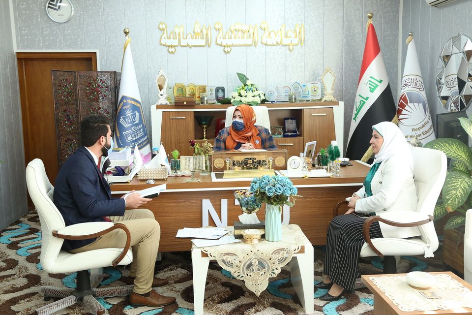 2021-02-24السيدة رئيس الجامعة التقنية الشمالية تلتقي بممثلي طلبة الكلية التقنية الهندسية الموصل.