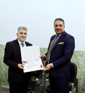 وبهذه المناسبة ثمن السيد عميد الكلية المحترم الجهود الكبيرة والمخلصة التي بذلوها اثناء مسيرتهم العلمية في خدمة العلم والتعليم. كما قدم لهم درع الوفاء وشهادة الشكر والتقدير متمنياً لهم التوفيق والسداد في حياتهم.