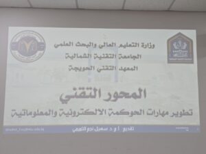 المعهد التقني الحويجة يعلن عن انطلاق المحور الرابع لمشروع تطوير وتأهيل قيادات الموارد البشرية للعام ٢٠٢٥ لموقع الحويجة تحت عنوان (تطوير مهارات الحوكمة الالكترونية والمعلوماتية).