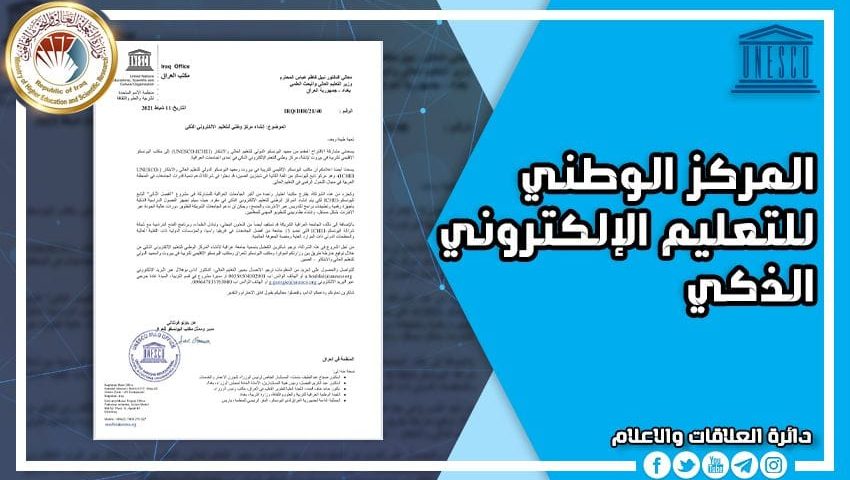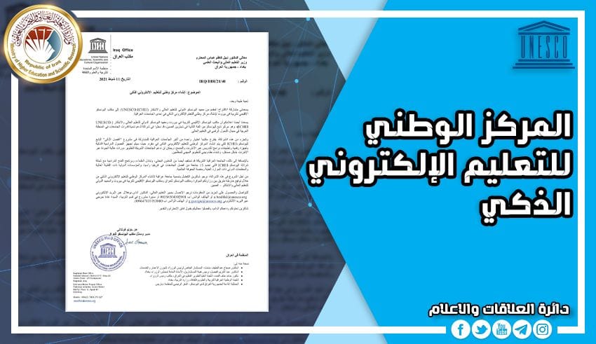 وفي هذا السياق وجه وزير التعليم العالي والبحث العلمي الأستاذ الدكتور نبيل كاظم عبد الصاحب باختيار جامعة تكنولوجيا المعلومات والاتصالات لإنشاء المركز الوطني للتعليم الإلكتروني الذكي بالتنسيق مع منظمة اليونسكو.