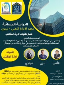 جانب من استمرار سير المحاضرات النظرية والعملية ليوم الاربعاء الموافق الرابع من تشرين الاول الحالي في اقسام المعهد التقني الدور2023-10-05المعهد التقني الحويجة يقوم يتوزيع بوسترات توعوية حول ( الحد من ظاهرة التنمر ). 2023-10-05 إظهار الكل 0 بروشورات تعريفية بمعهد الادارة نينوى 2023-10-05 IMG 20231005 WA0258 منشورات ذات صلةNorthern Technical University organizes activities for the University Scouts and Guides Camp for Sustainability, Kirkuk site.2025-11-01الجامعة التقنية الشمالية تختتم فعاليات مخيم الجوالة والدليلات الجامعي للاستدامة للطلاب موقع كركوك .قراءة المزيدNorthern Technical University organizes an educational seminar on early detection of breast cancer.2025-11-01الجامعة التقنية الشمالية تنظم ندوة تثقيفية عن الكشف المبكر لسرطان الثدي . قراءة المزيدStudents of the Northern Technical University the creators of the future in all fields, especially in the field of drawing.2025-10-31طلبة الجامعة التقنية الشمالية… مبدعو المستقبل في كل المجالات وخصوصاً في مجال الرسم. قراءة المزيد Comments are closed.