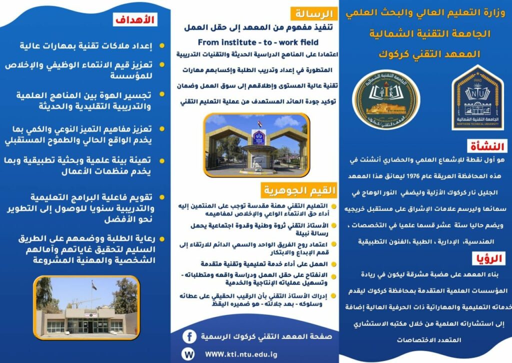 الجامعة التقنية الشمالية تلتقي الكترونياً مع ممثلي السفارة الفرنسية ..2022-09-20*التعليم تعلن فتح التقديم الى قناة 10% الأوائل من خريجي المعاهد*2022-09-20 إظهار الكل 0 بروشور تعريفي بالمعهد التقني كركوك . 2022-09-20 بروشور تعريفي بالمعهد التقني كركوك .1 منشورات ذات صلةNorthern Technical University organizes an educational seminar on early detection of breast cancer.2025-11-01الجامعة التقنية الشمالية تنظم ندوة تثقيفية عن الكشف المبكر لسرطان الثدي . قراءة المزيدStudents of the Northern Technical University the creators of the future in all fields, especially in the field of drawing.2025-10-31طلبة الجامعة التقنية الشمالية… مبدعو المستقبل في كل المجالات وخصوصاً في مجال الرسم. قراءة المزيدNorthern Technical University organizes a visit to Sinjar district to promote the values of coexistence.2025-10-30الجامعة التقنية الشمالية تنظّم زيارة إلى قضاء سنجار لتعزيز قيم التعايش المشترك . قراءة المزيد Comments are closed.