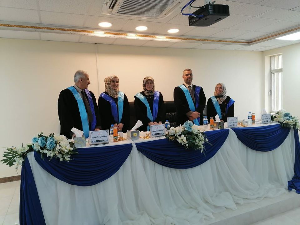 (تحضير عدد من بوليمرات الأيميدازول المتعاقبة ودراسة توصيليتها الكهربائية) وعلى قاعة المناقشات في جامعة الموصل / كلية العلوم / قسم الكيمياء للطالبة آية عبد الوهاب ذنون – إختصاص كيمياء صناعية.