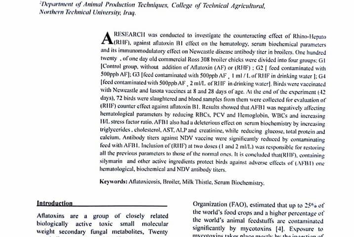 ( Protective Effects of Rhino-Hepato Forte in Broiler chickens )