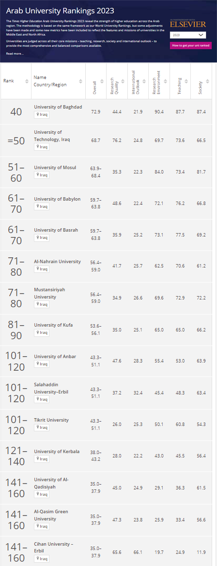 2. تصنيف التايمز لجامعات المنطقة العربية (Arab University Ranking)