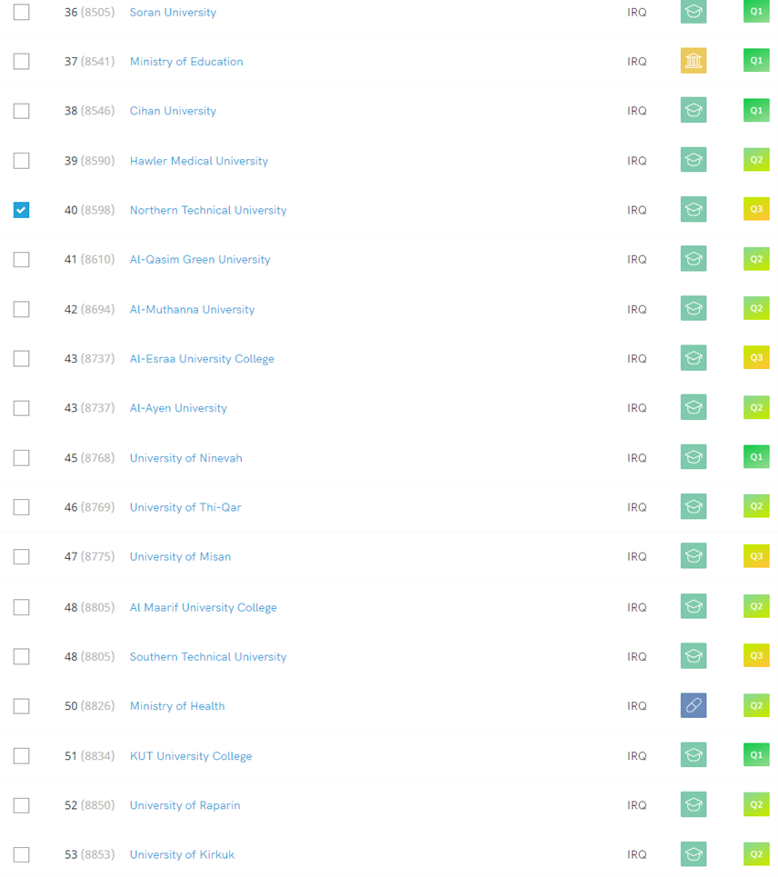فيما يخص هذا التصنيف فقد ظهر اسم الجامعة التقنية الشمالية في هذا التصنيف ولاول مرة في عام 2021 واستمر بالظهور لعام 2024 وكما يلي الصورة توضح مرتبة الجامعة على الصعيدين المحلي والعالمي (40 و 8598 ) على التوالي .