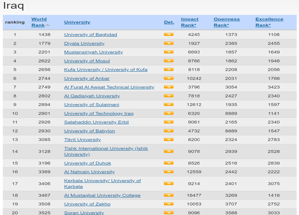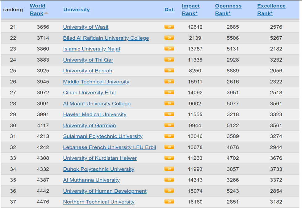 فقد أحتلت ‌جامعتنا المرتبة 37 ‌محلياً ‌ والمرتبة 4476 عالمياً كما ‌موضح‌ في ‌الصورة ‌ادناه.