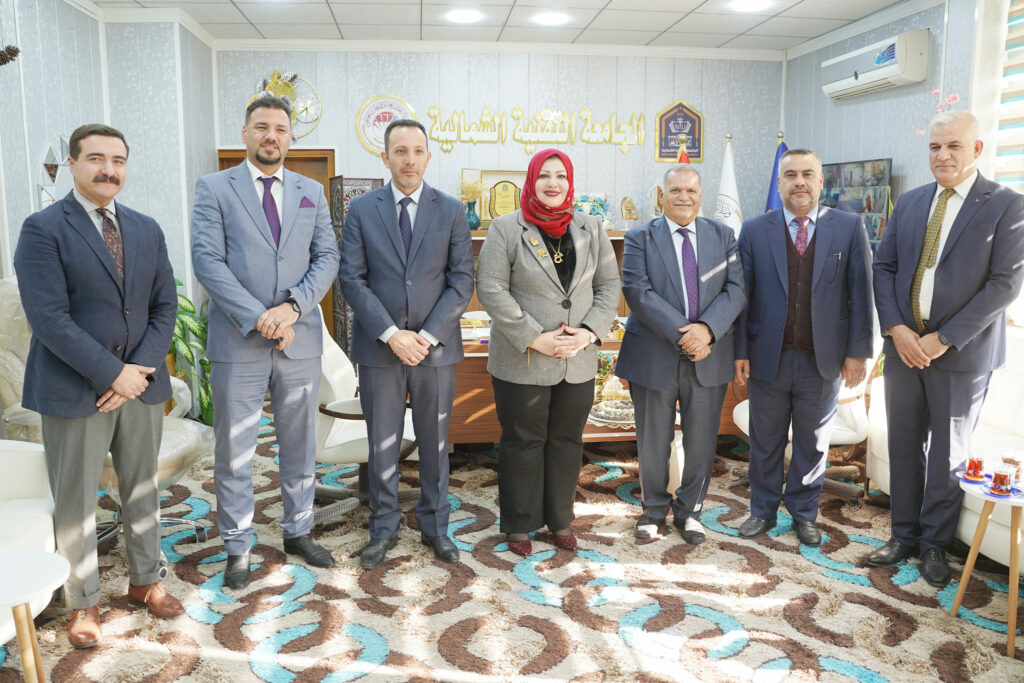 2022-12-08تعزيزاً لتوطيد العلاقات الاكاديمية بين جامعتنا التقنية الشمالية والجامعات والكليات الحكومية والاهلية استقبلت السيدة رئيس الجامعة التقنية الشمالية الاستاذ الدكتورة علياء عباس علي العطار في مكتبها اليوم السيد عميد كلية المستقبل الجامعة الاهلية الاستاذ الدكتور حسن شاكر مجدي والوفد المرافق له وبحضور السيد رئيس جامعة نينوى الاستاذ الدكتور اسامة المشهداني والسيد مساعد رئيس الجامعة للشؤون العلمية الاستاذ المساعد الدكتور عمر رافع محمود والاستاذ الدكتور ذنون يونس ذنون مساعد رئيس الجامعة للشؤون الادارية جرى اثناء اللقاء التباحث حول العديد من القضايا وكان أهمها تفعيل آلية التعاون المشترك المبرمة سابقاً بين الطرفين وعلى الاصعدة كافة من حيث أقامة المؤتمرات العلمية والدورات والندوات وتبادل الخبرات وقد أعرب السيد عميد كلية المستقبل عن سروره لما شاهده واستمع له من استعراض قدمته السيدة رئيس الجامعة حول أنجازات الجامعة وفي ختام الزيارة قدمت السيدة رئيس الجامعة للسيد عميد الكلية هدية عينية ودرع الجامعة تقديراً لزيارته وبدوره قدم سيادته شكره وتقديره للسيدة رئيس الجامعة على حفاوة الاستقبال وحسن الضيافة وهدية عينية داعية الله لجامعتنا بالمزيد من التألق العلمي .