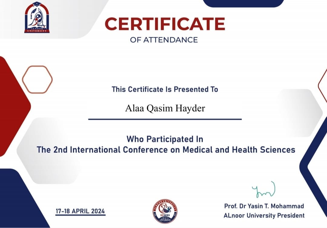 شاركت التدريسيتان أ. م افراح يونس جاسم / رئيس قسم النواتج الطبيعية و م. م الاء قاسم حيدر / قسم مسببات الأمراض الانتقالية في مركزنا في الموتمر الدولي الثاني لجامعة النور