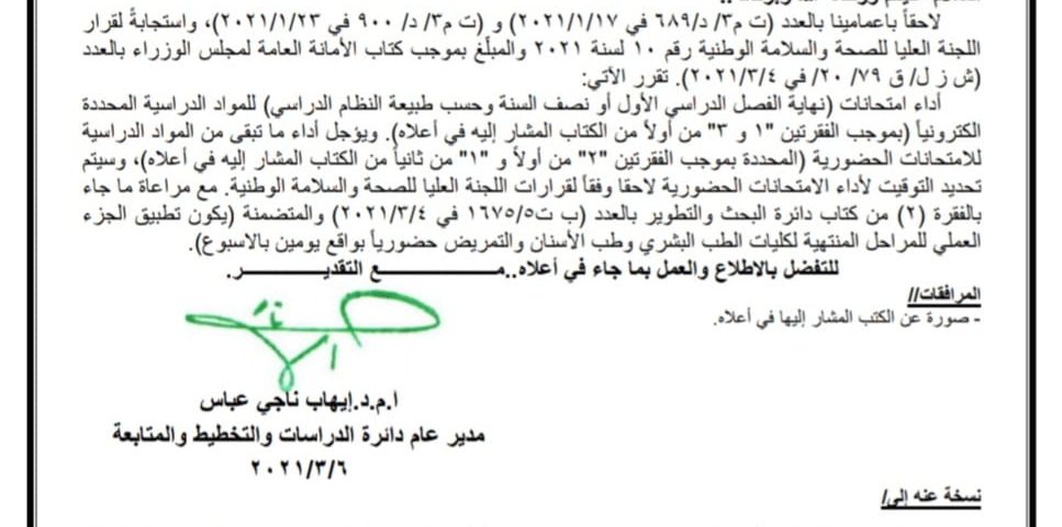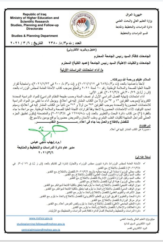 التعليم تصدر قرارا بشأن امتحانات الدراسات الأولية في الجامعات