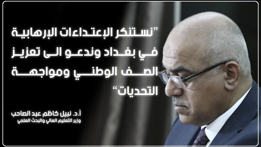 في الوقت الذي نستنكر ونشجب فيه الإعتداءات الإرهابية الآثمة التي استهدفت المدنيين في العاصمة بغداد فإننا ندعو الى تعزيز الصف الوطني العراقي ومواجهة التحديات الأمنية وسد كل الثغرات المحتملة التي قد ينفذ منها القتلة المأجورون لتحقيق مآربهم التي تريد بالعراق وشعبه شرا.