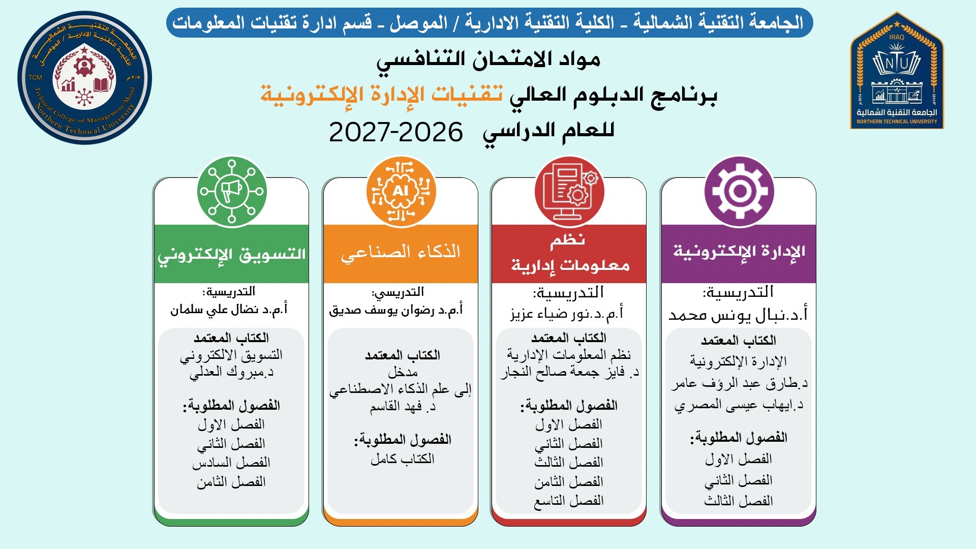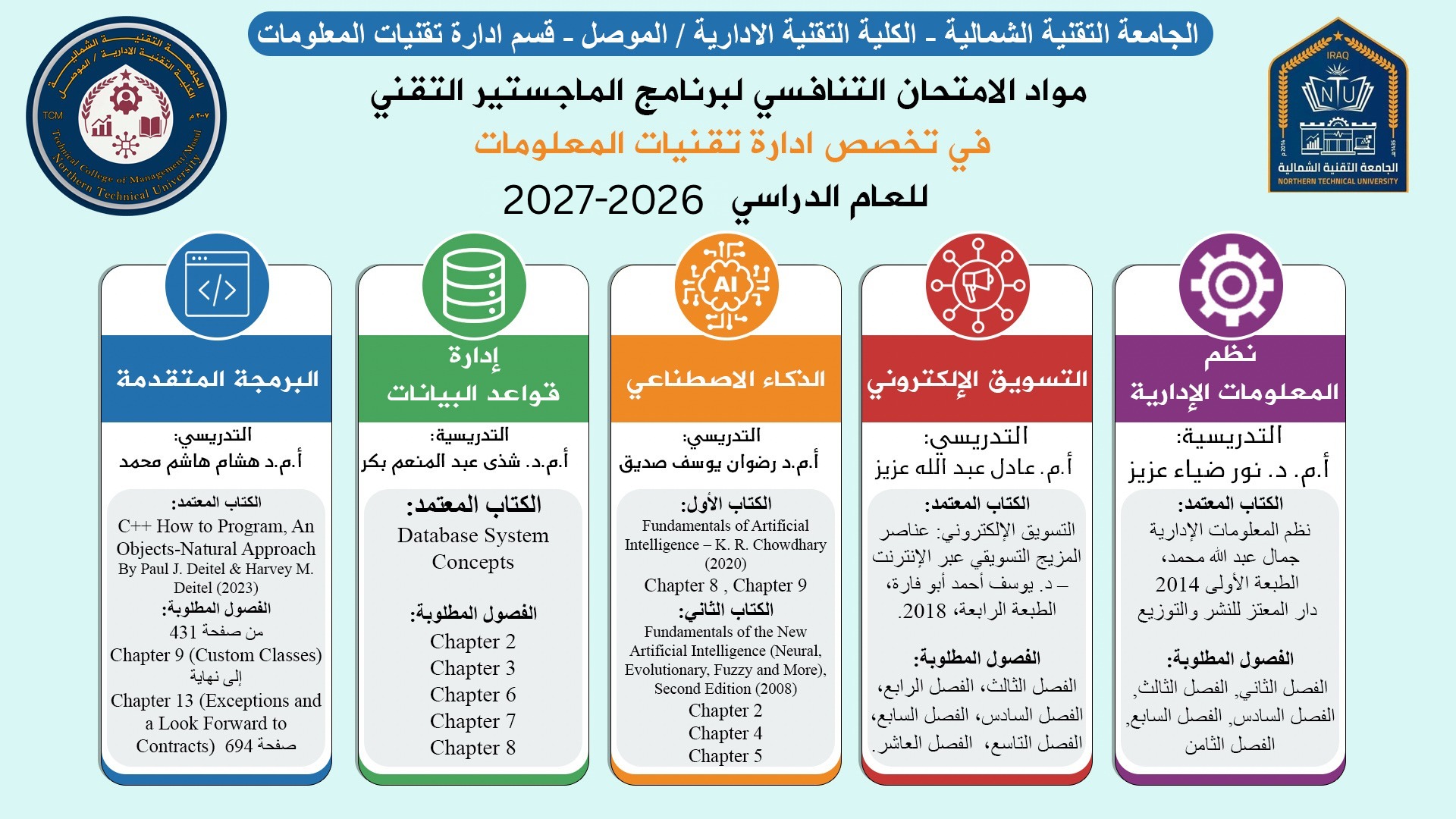 مدخلات القبول لبرامج قسم تقنيات الاحصاء والمعلوماتية 2026-2027