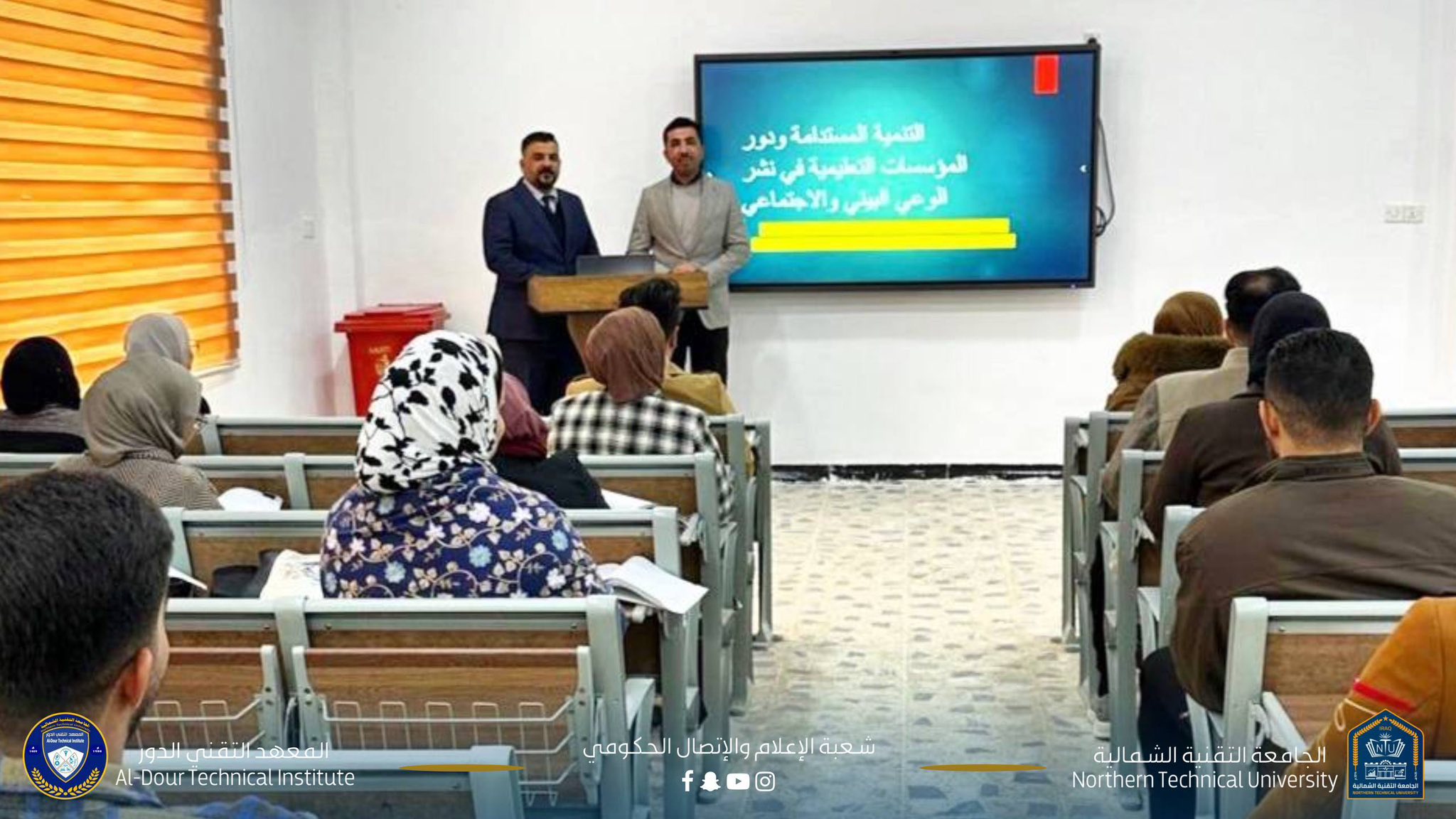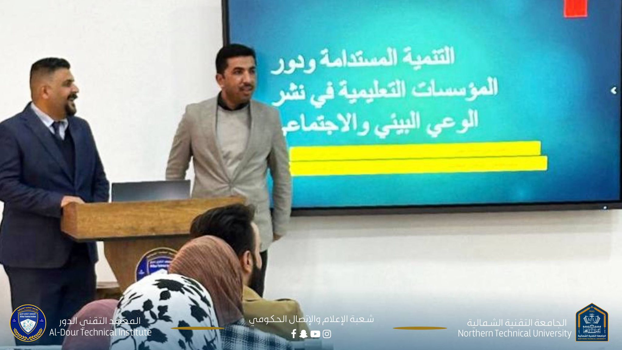 برعاية السيدة رئيس الجامعة المخترمة وباشراف السيدة عميد المعهد نظم قسم تقنيات الادارة القانونية في المعهد وخلال كانون الثاني الجاري ندوة يعنوان التنمية المستدامة ودور المؤسسات التعليمية في نشر الوعي البيئي والاجتماعي وهي ضمن انشطة الاستدامة ومن خلال شعبة ضمان الجودة الجامعي وتناول على القائها