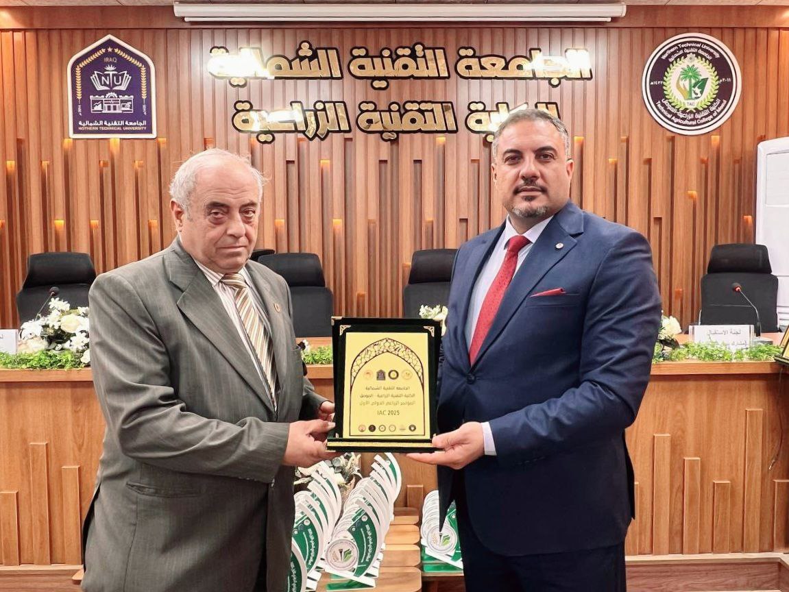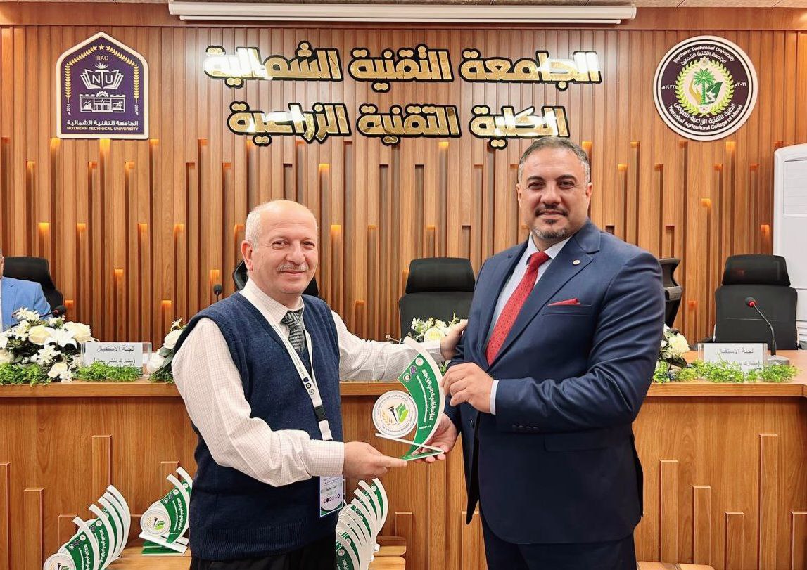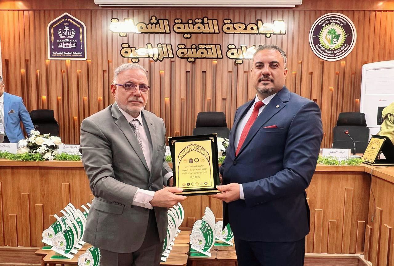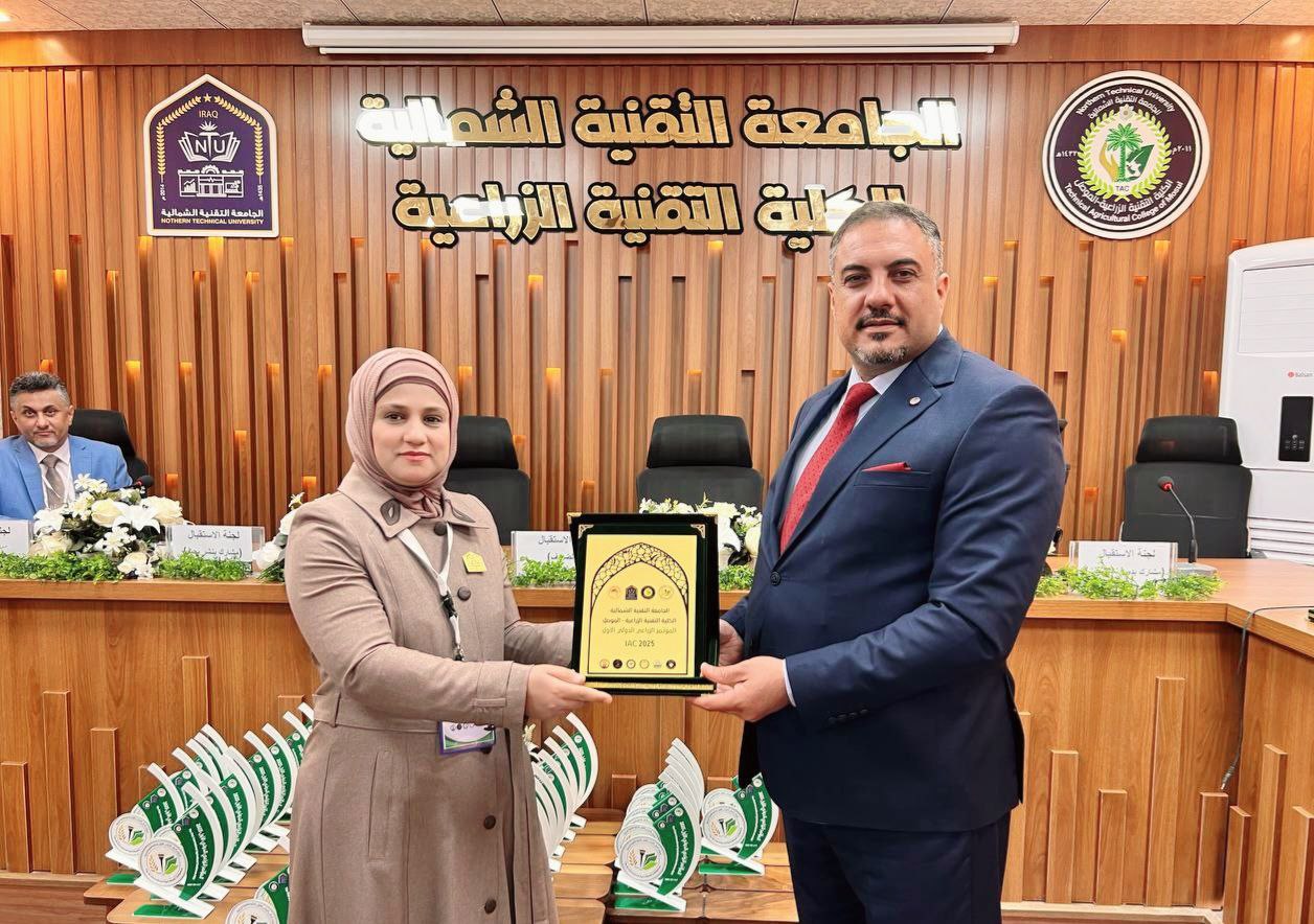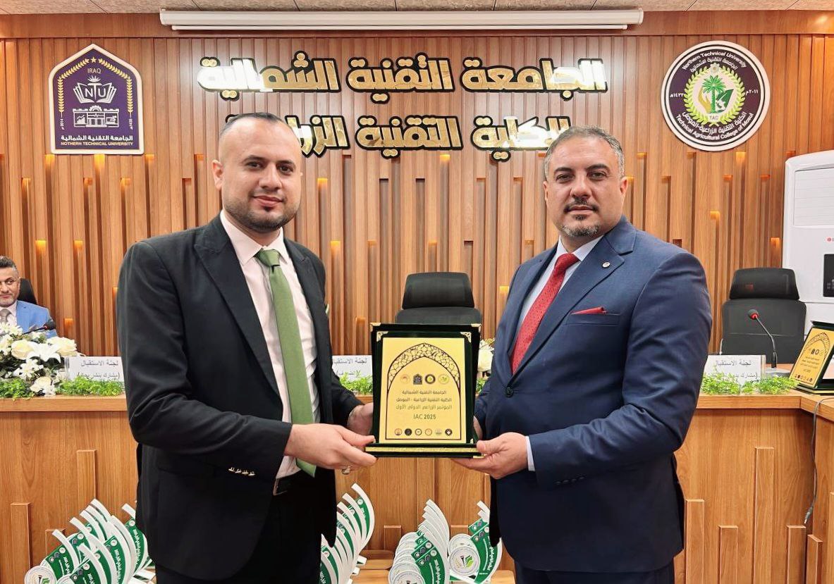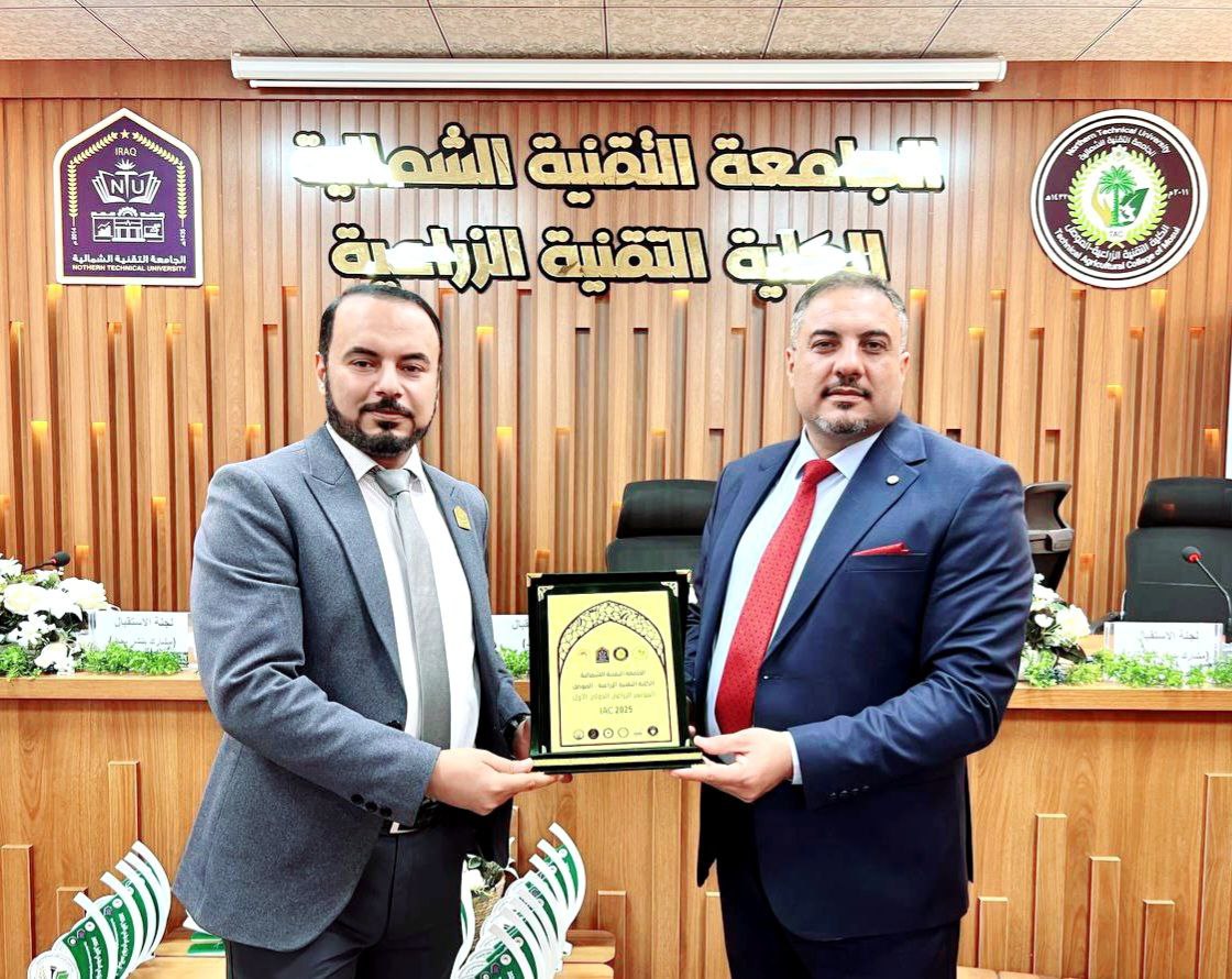 2025-12-06برعاية السيدة رئيس الجامعة التقنية الشمالية الأستاذ الدكتورة علياء عباس العطار، وبإشراف السيد عميد الكلية التقنية الزراعية الأستاذ الدكتور شهاب أحمد البجاري، جرى يوم الخميس الموافق 4 / 12 / 2025 تكريم الباحثين والمشاركين وأعضاء اللجان التنظيمية في المؤتمر الزراعي الدولي الأول IAC 2025، تقديرًا لجهودهم المبذولة في إنجاح فعاليات المؤتمر ورفع اسم الجامعة في المحافل العلمية.
