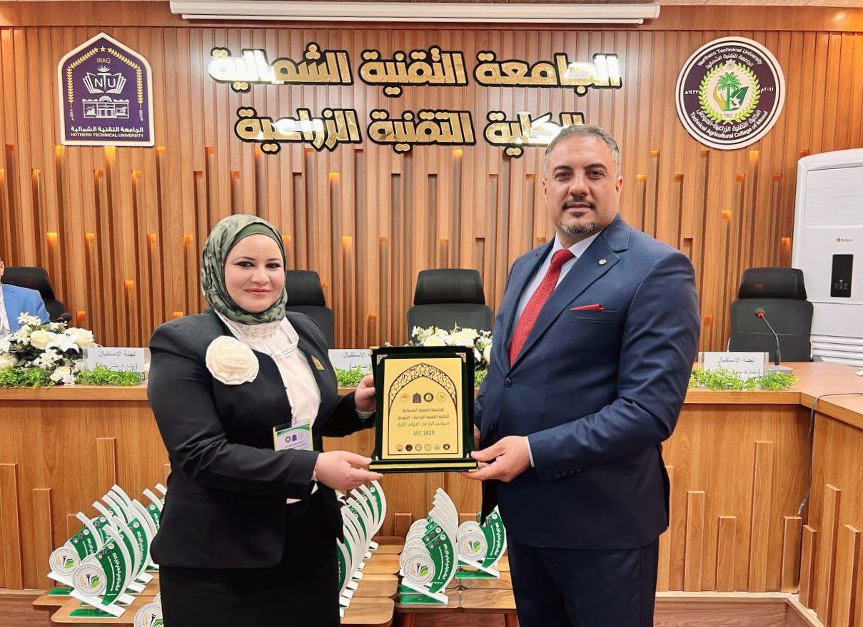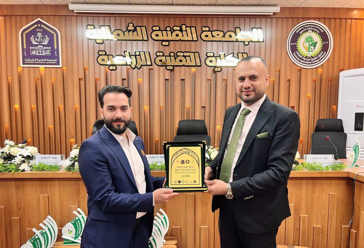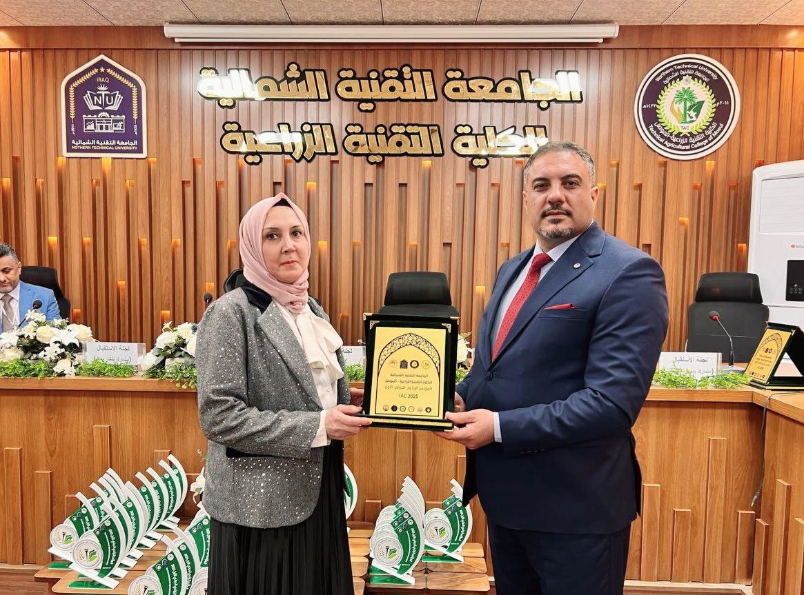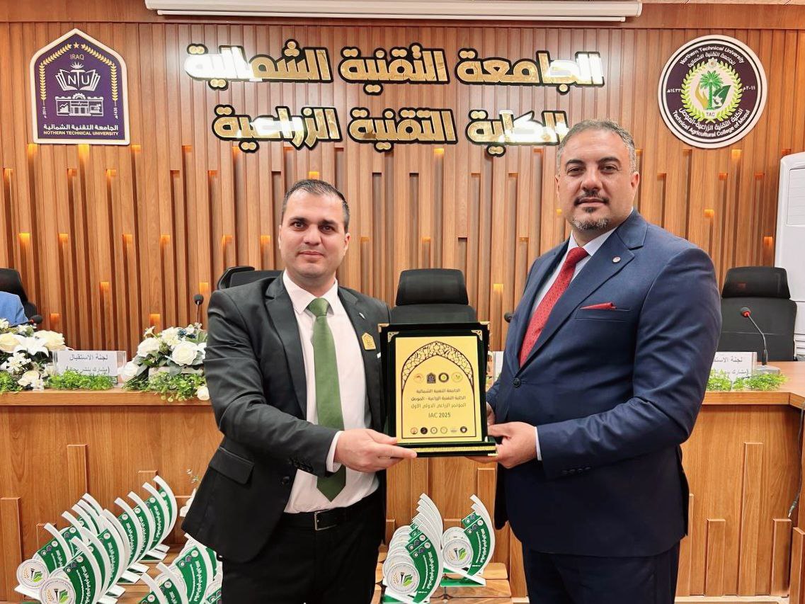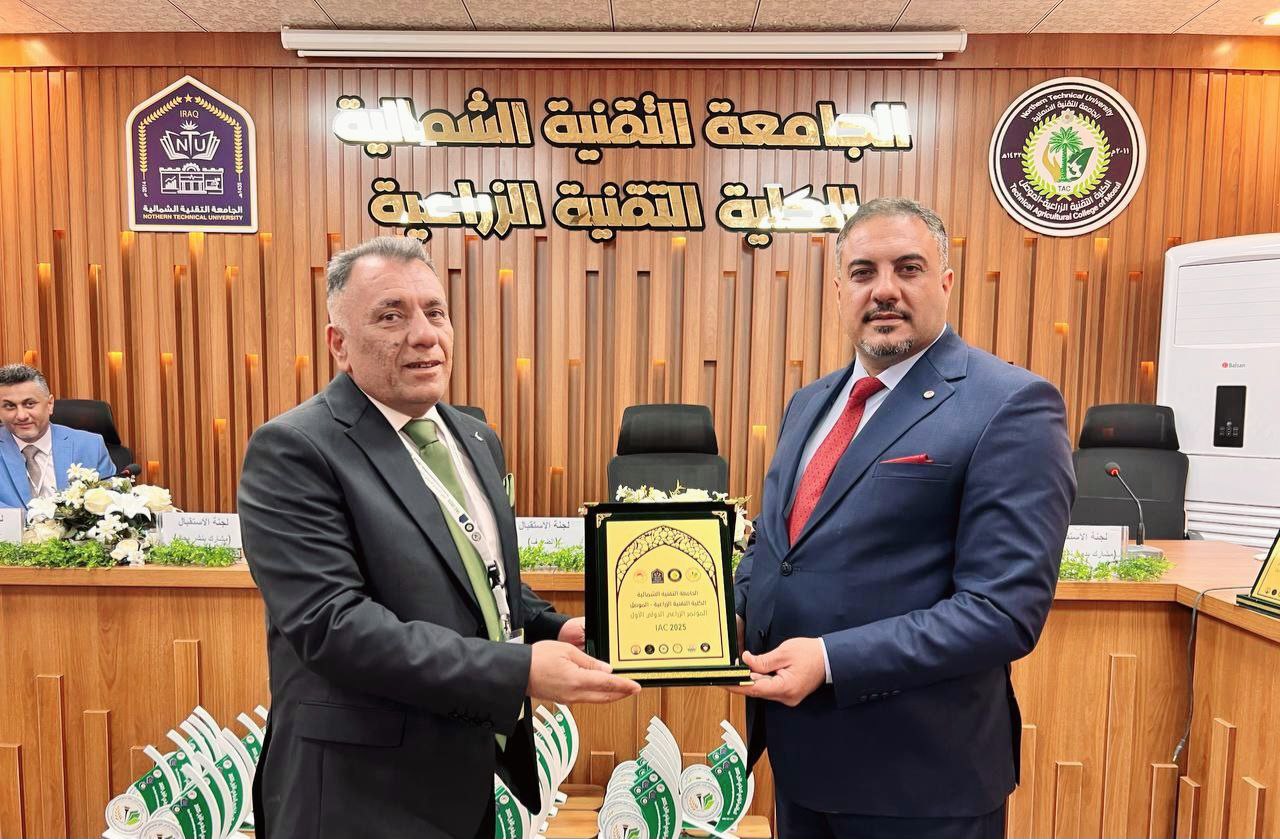2025-12-06برعاية السيدة رئيس الجامعة التقنية الشمالية الأستاذ الدكتورة علياء عباس العطار، وبإشراف السيد عميد الكلية التقنية الزراعية الأستاذ الدكتور شهاب أحمد البجاري، جرى يوم الخميس الموافق 4 / 12 / 2025 تكريم الباحثين والمشاركين وأعضاء اللجان التنظيمية في المؤتمر الزراعي الدولي الأول IAC 2025، تقديرًا لجهودهم المبذولة في إنجاح فعاليات المؤتمر ورفع اسم الجامعة في المحافل العلمية.