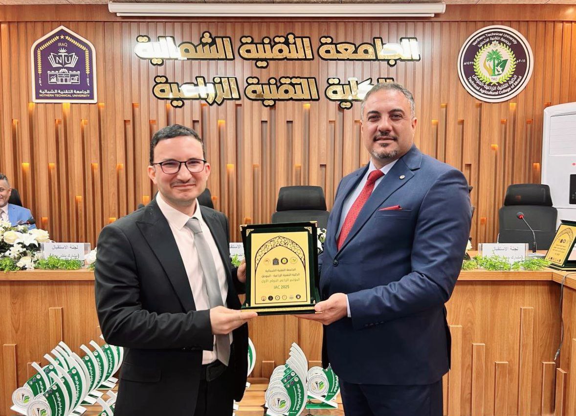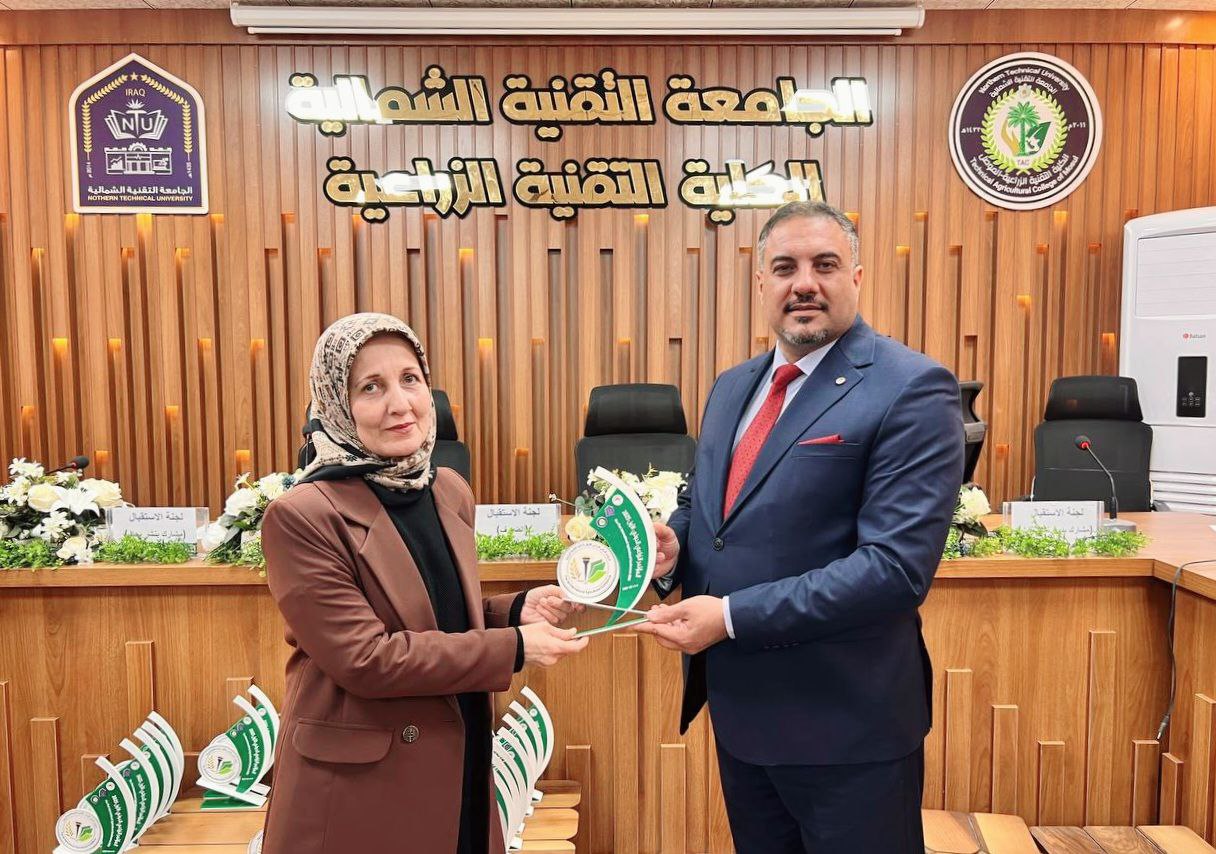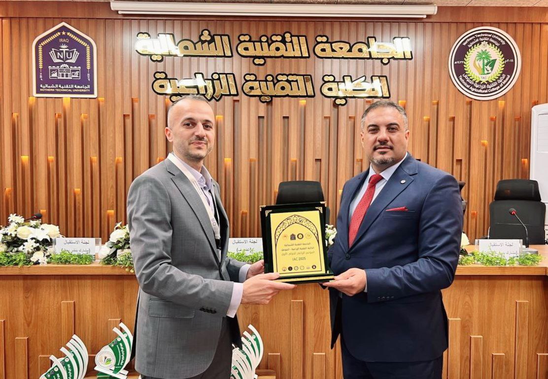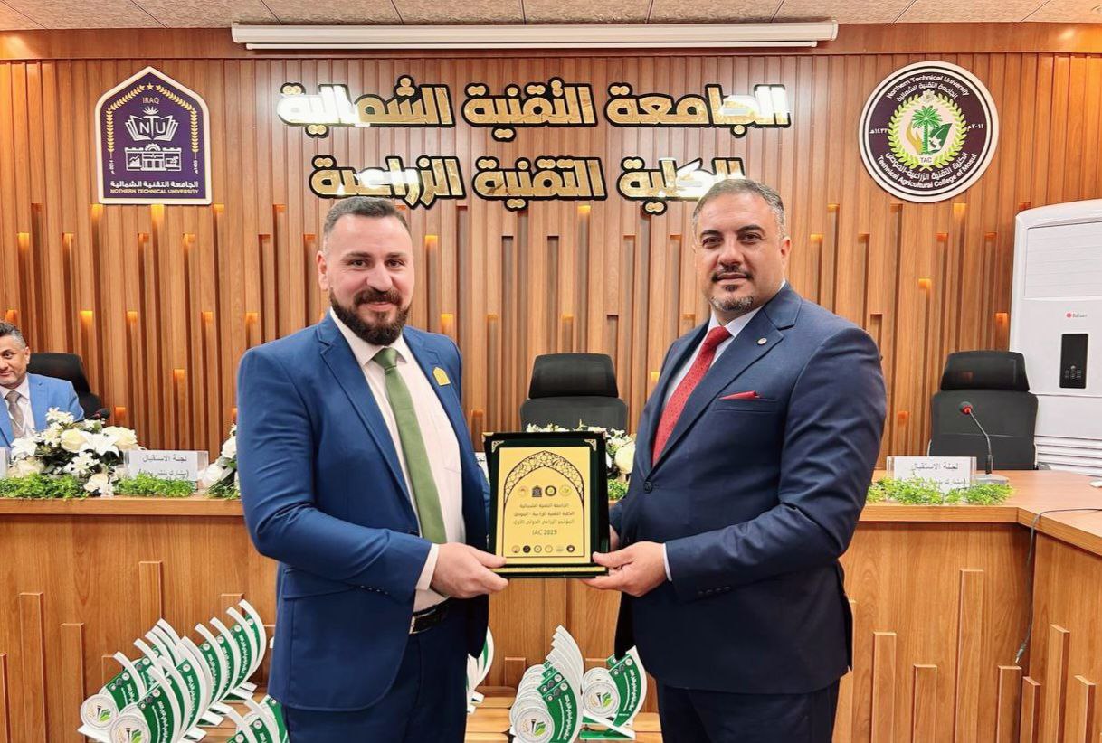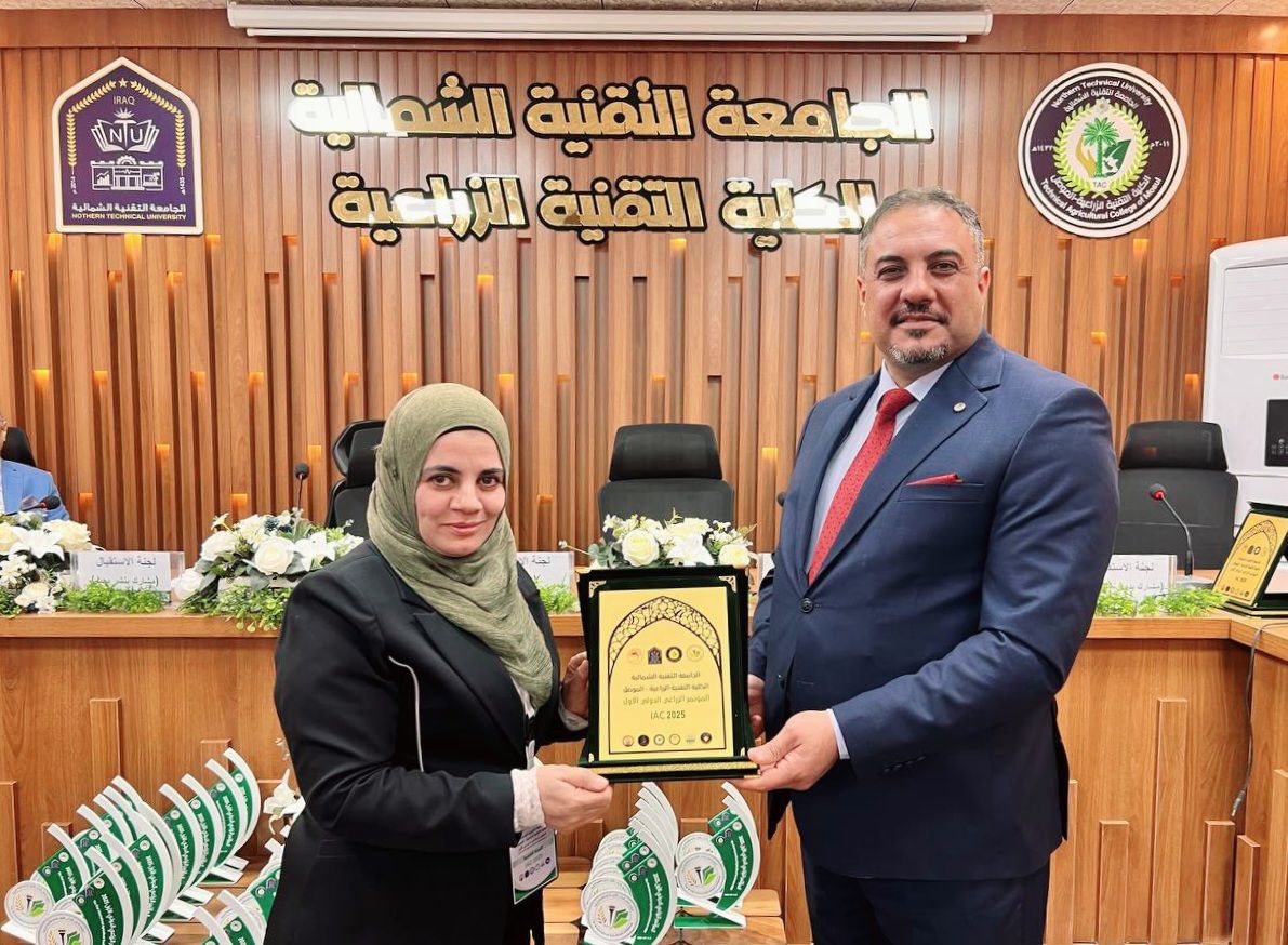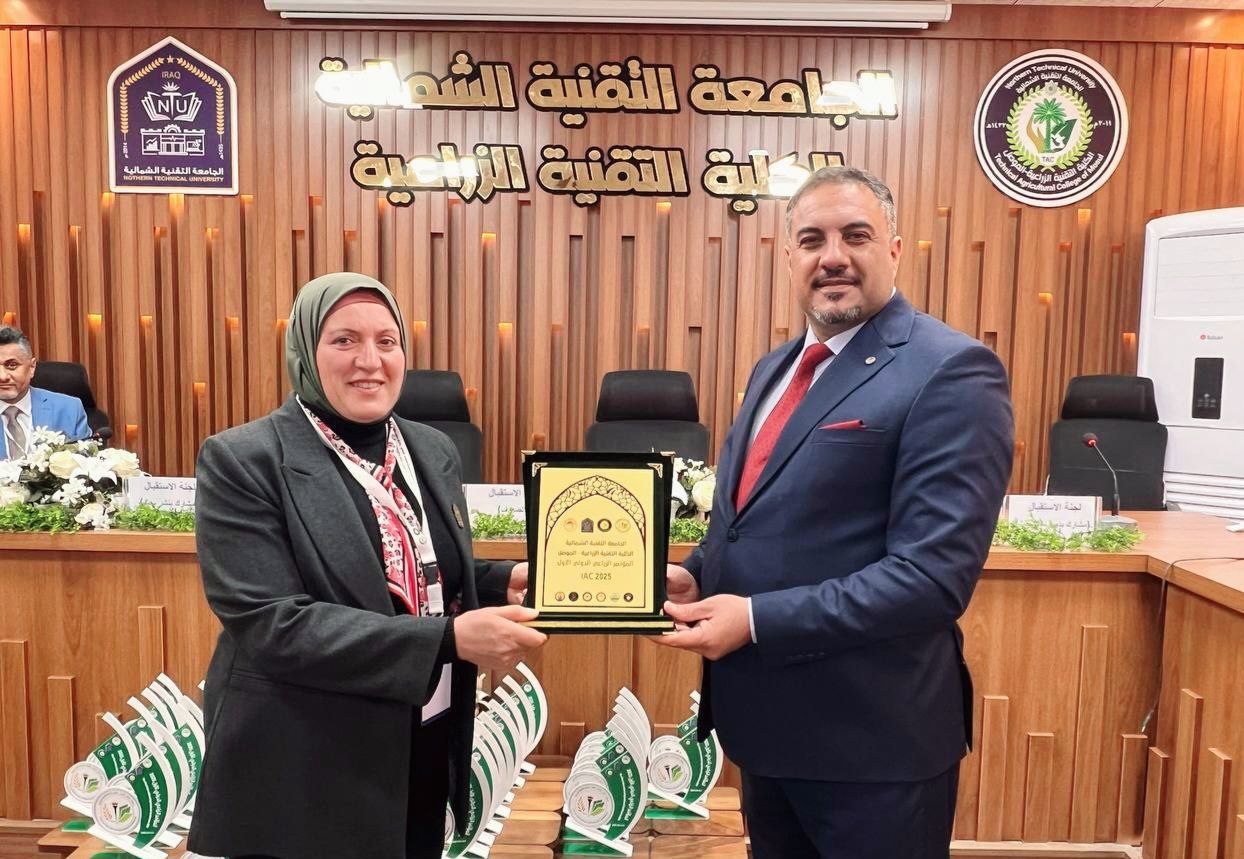 2025-12-06برعاية السيدة رئيس الجامعة التقنية الشمالية الأستاذ الدكتورة علياء عباس العطار، وبإشراف السيد عميد الكلية التقنية الزراعية الأستاذ الدكتور شهاب أحمد البجاري، جرى يوم الخميس الموافق 4 / 12 / 2025 تكريم الباحثين والمشاركين وأعضاء اللجان التنظيمية في المؤتمر الزراعي الدولي الأول IAC 2025، تقديرًا لجهودهم المبذولة في إنجاح فعاليات المؤتمر ورفع اسم الجامعة في المحافل العلمية.