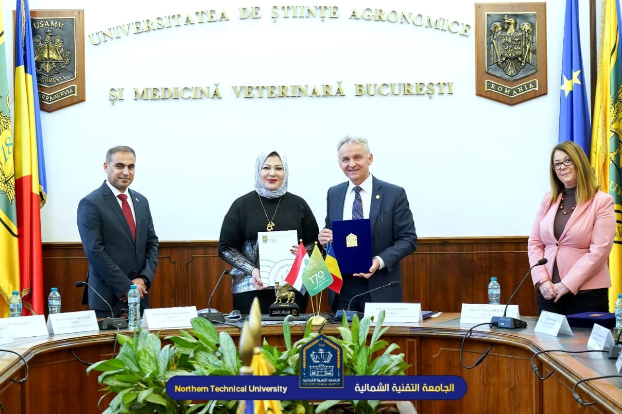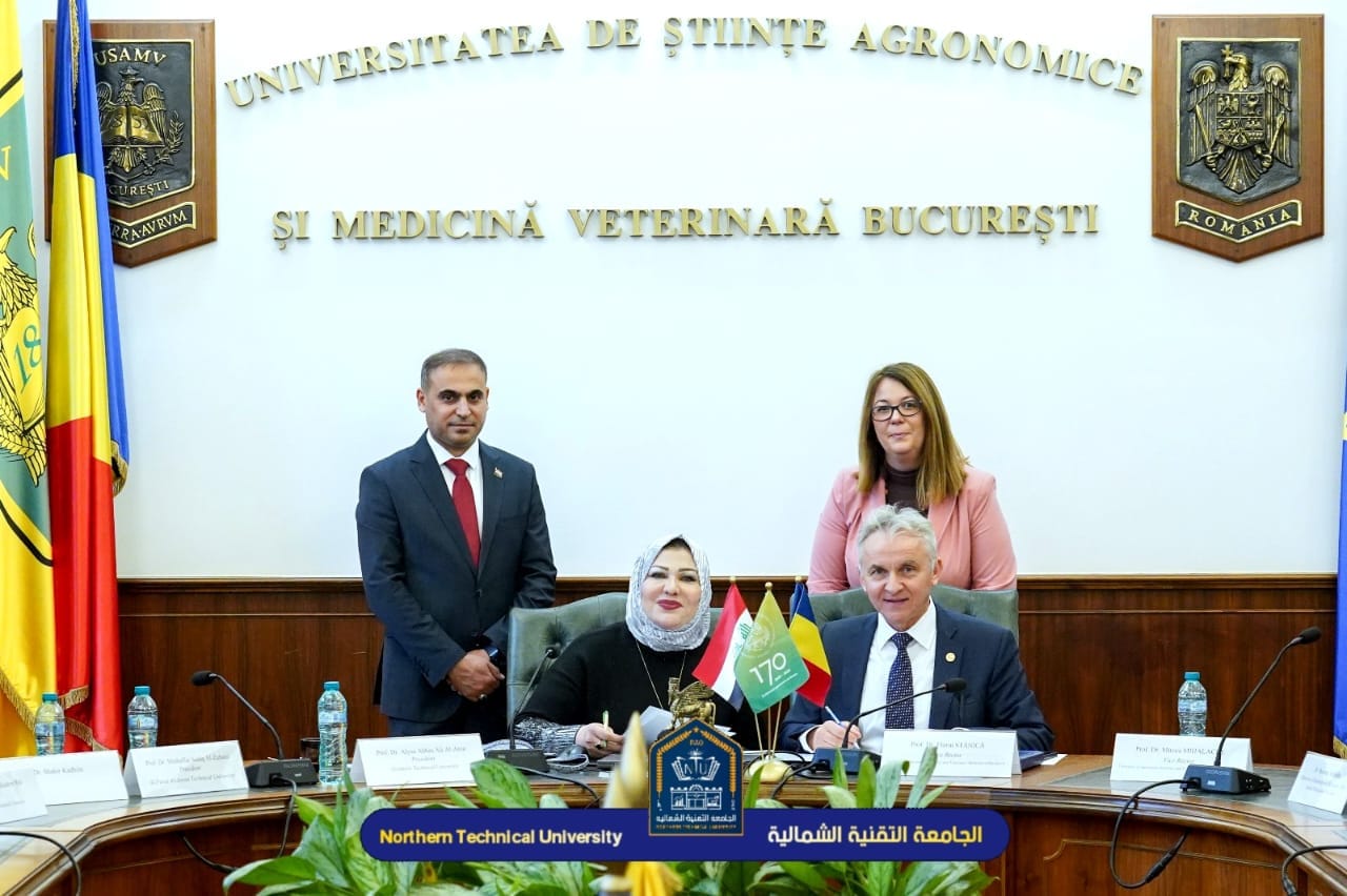 تنفيذاً لتوجيهات السيد معالي وزير التعليم العالي والبحث العلمي وسعياً من السيدة رئيس جامعتنا التقنية الشمالية في تعزيز العلاقات مع الجامعات العالمية المعتمدة ومن أجل تبادل المعرفة زارت السيدة رئيس الجامعة جامعة العلوم الزراعية والطب البيطري) في بوخارست- رومانية، وهدفت الزيارة على سعي سيادتها في توقيع مذكرة تفاهم وتفعيل آلية تعاون مشترك تصب في مصلحة جامعتنا. والتي تضم عدداً من البنود التي تصب في مصلحة الطرفين والتعاون في مجال التدريب والتدريس والتعلم وتطوير المناهج بالاضافة لمشاريع التنقل الدولي لطلاب و موظفي التعليم العالي ..
