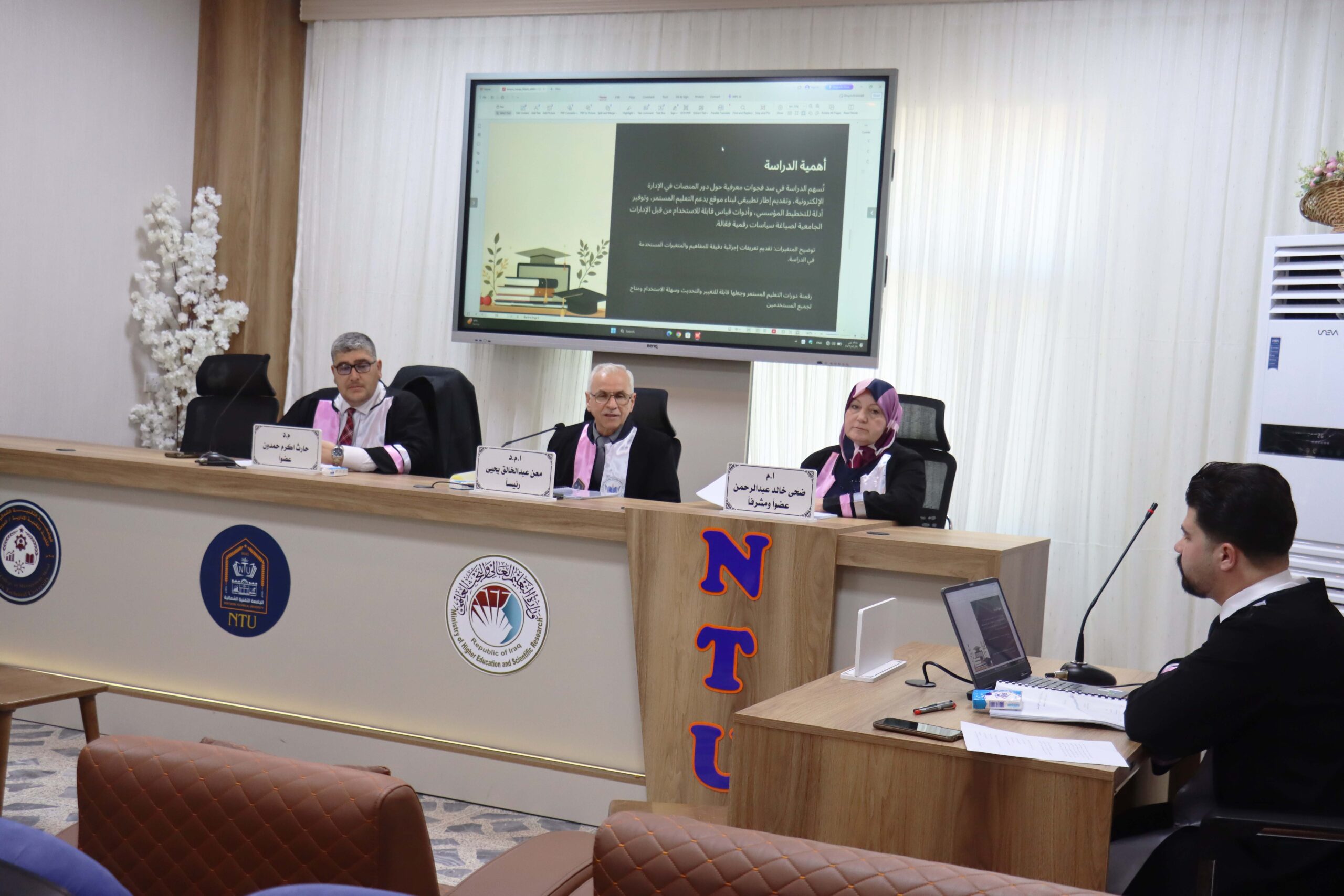 The Administrative Technical College / Mosul held the discussion of a Higher Diploma research in Electronic Management Technologies, submitted by Abdulrahman Fares Dawood, entitled: