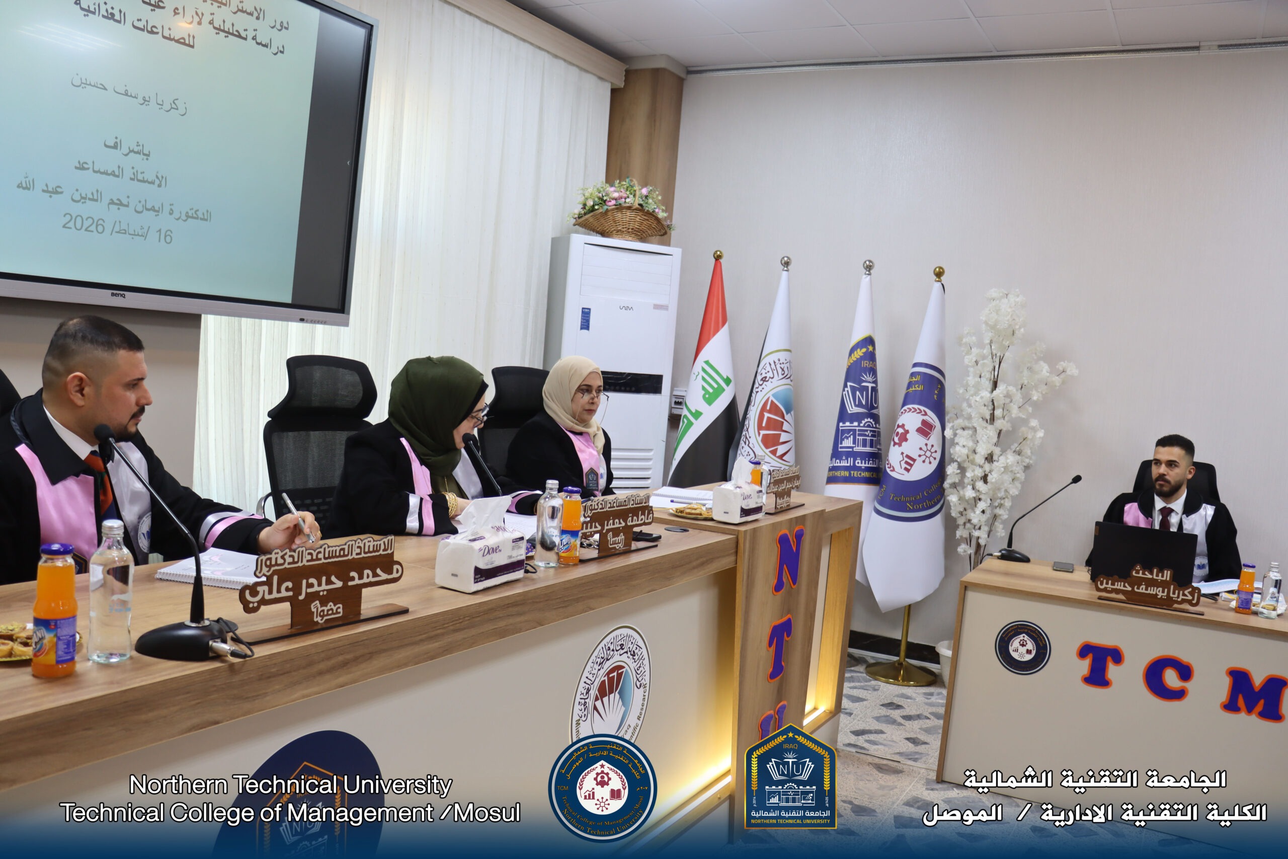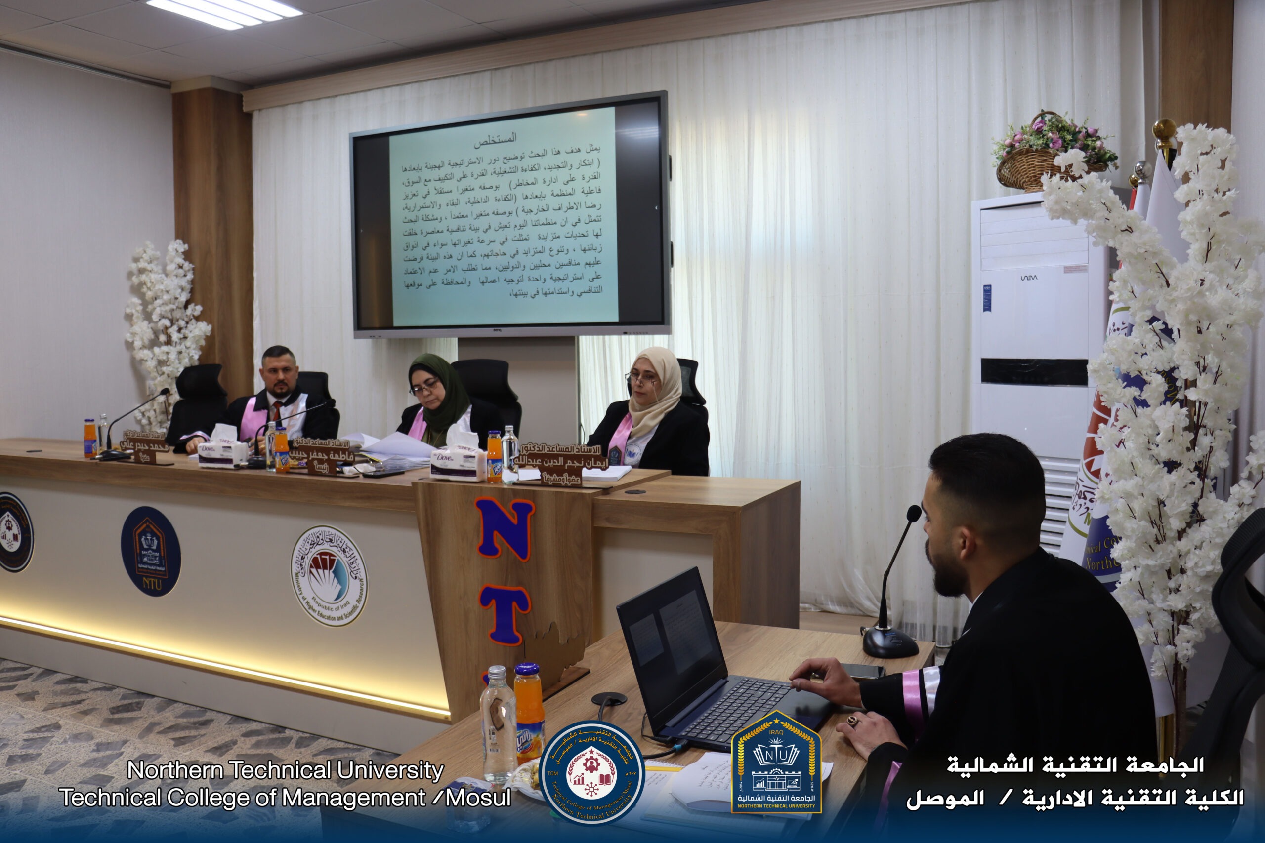 The Administrative Technical College / Mosul held the discussion of a Higher Diploma research in Business Administration Technologies, submitted by Zakaria Yousif Hussein, entitled: