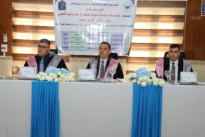 Part of the discussion was attended by the respected Dean of the College, Prof. Samir Taha Yassin, the Assistant Dean for Scientific and Student Affairs, Prof. Ahmed Najm Sheet, department heads, a number of faculty members, college staff, and postgraduate students.