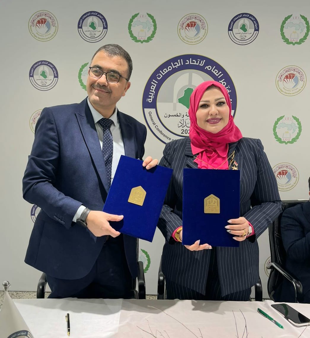 Mrs. President of Northern Technical University, Professor Dr. Aliaa Abbas Ali Al-Attar, from our beautiful Baghdad and on the sidelines of the Arab Universities Conference and as per our commitment to it, leads the torch of glow for our university by organizing a scientific carnival through signing a number of agreements with Arab universities, including: