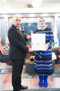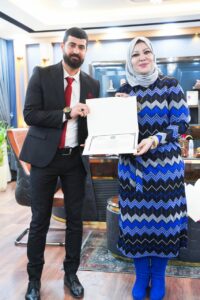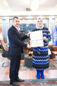 Mrs. President of the Northern Technical University, Professor Dr. Alia Abbas Ali Al-Attar, honors the university team participating in the debate between public and private Iraqi universities, which was hosted by Al-Nour University College.