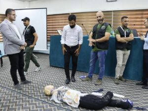 Under the patronage of the President of Northern Technical University, Prof. Dr. Alia Abbas Ali Al-Attar, and supervised by the Assistant President for Scientific Affairs, Associate Prof. Dr. Omar Raef Mahmoud, the Chemical, Biological, and Radiological Safety and Security Division, in collaboration with the Department of Media and Public Communications and the “Help Me Live” Foundation, organized a training workshop titled “Save a Life.”