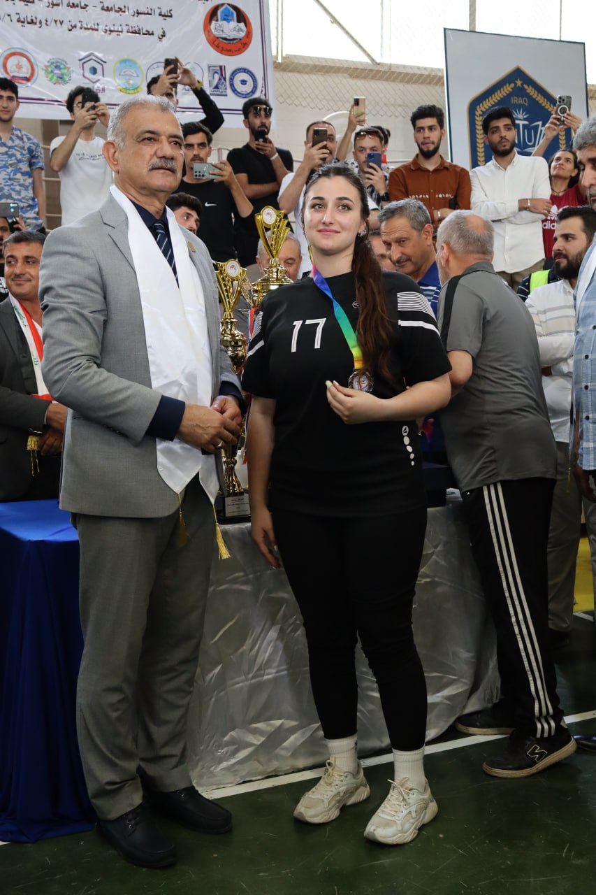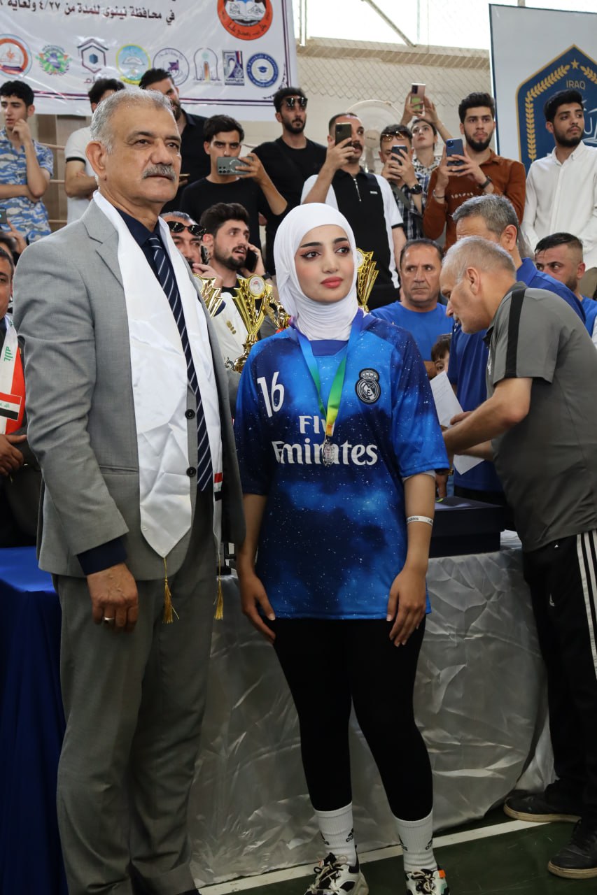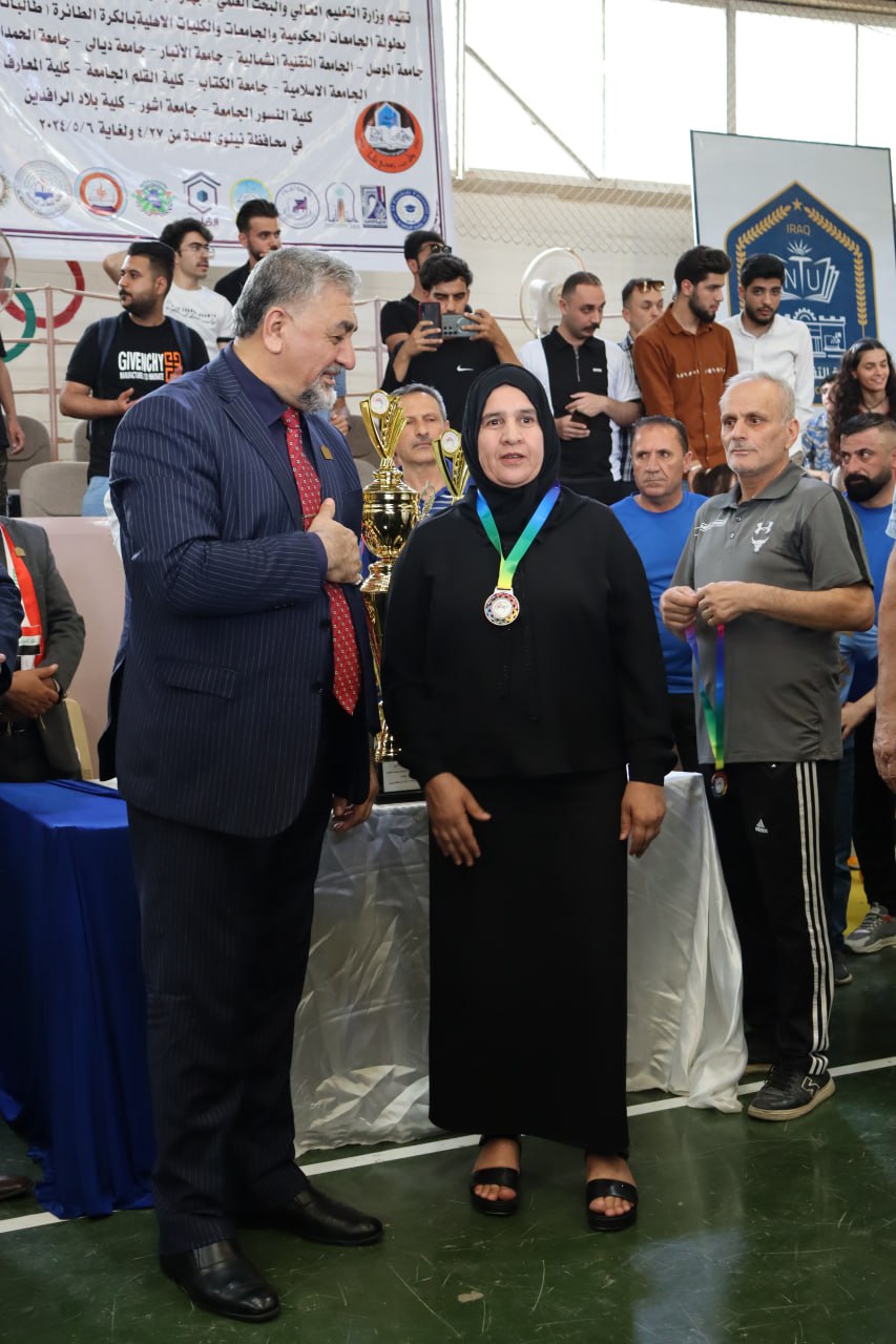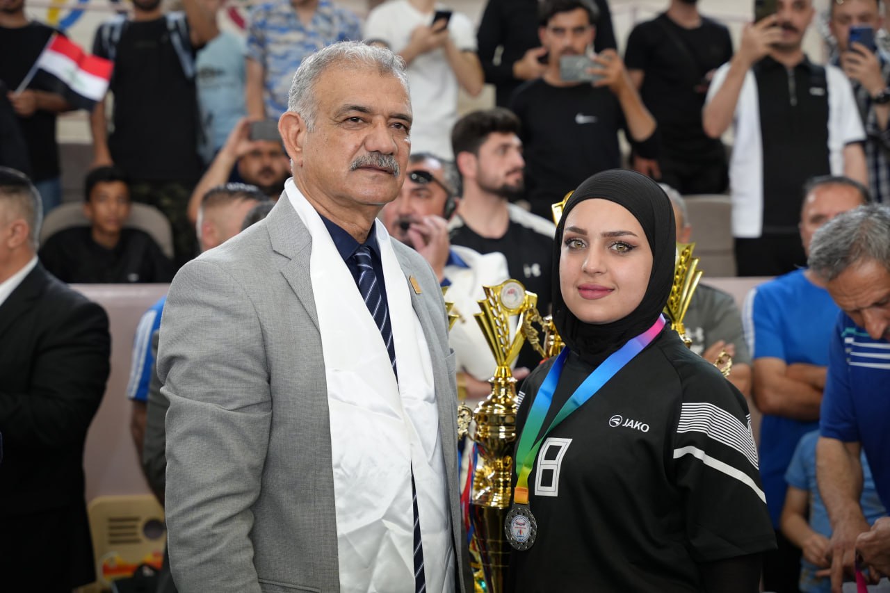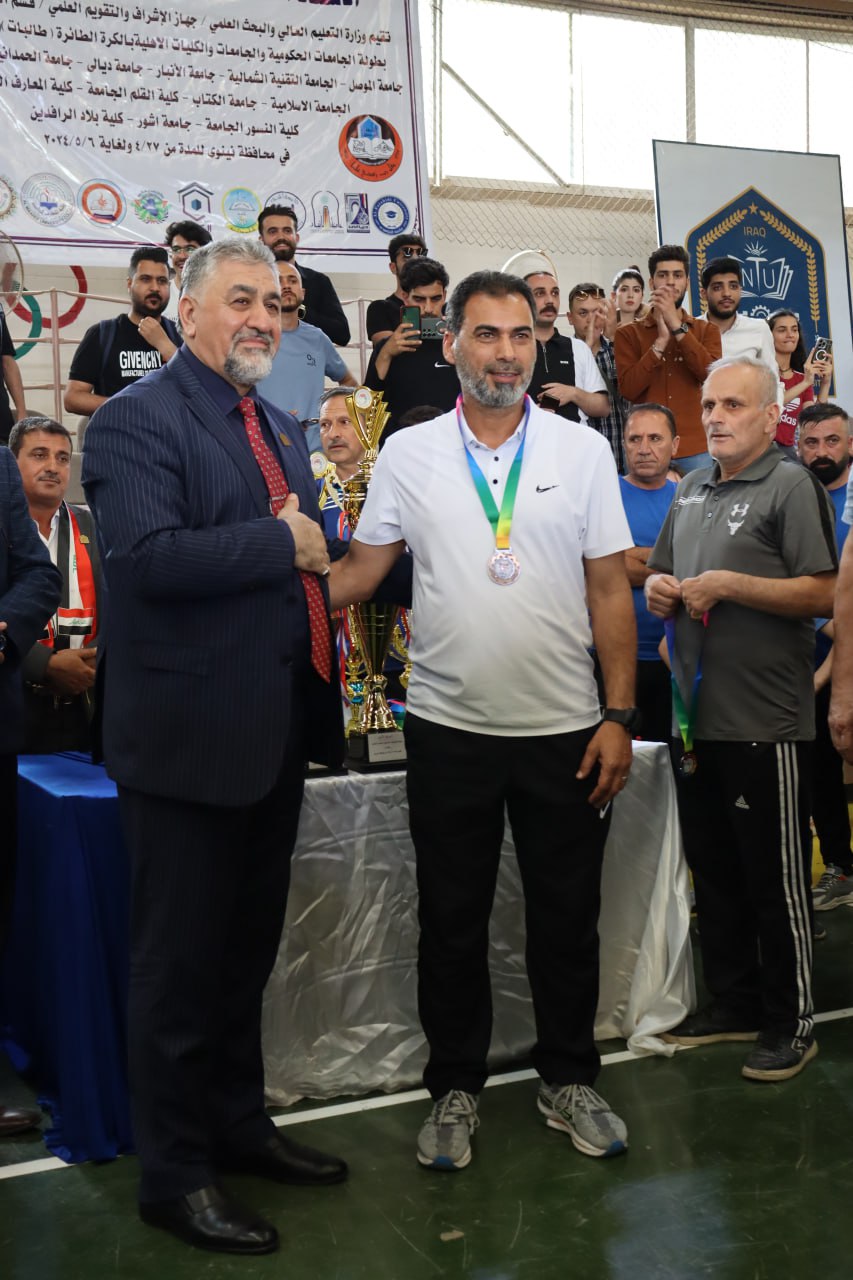 2024-05-07Part of honoring the winning teams at the conclusion of the Iraqi Universities and Private Colleges Volleyball Championship event (female students)….