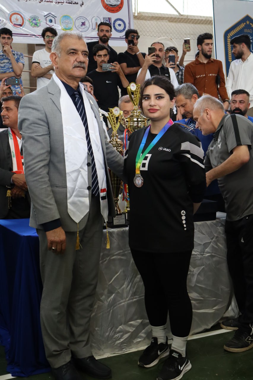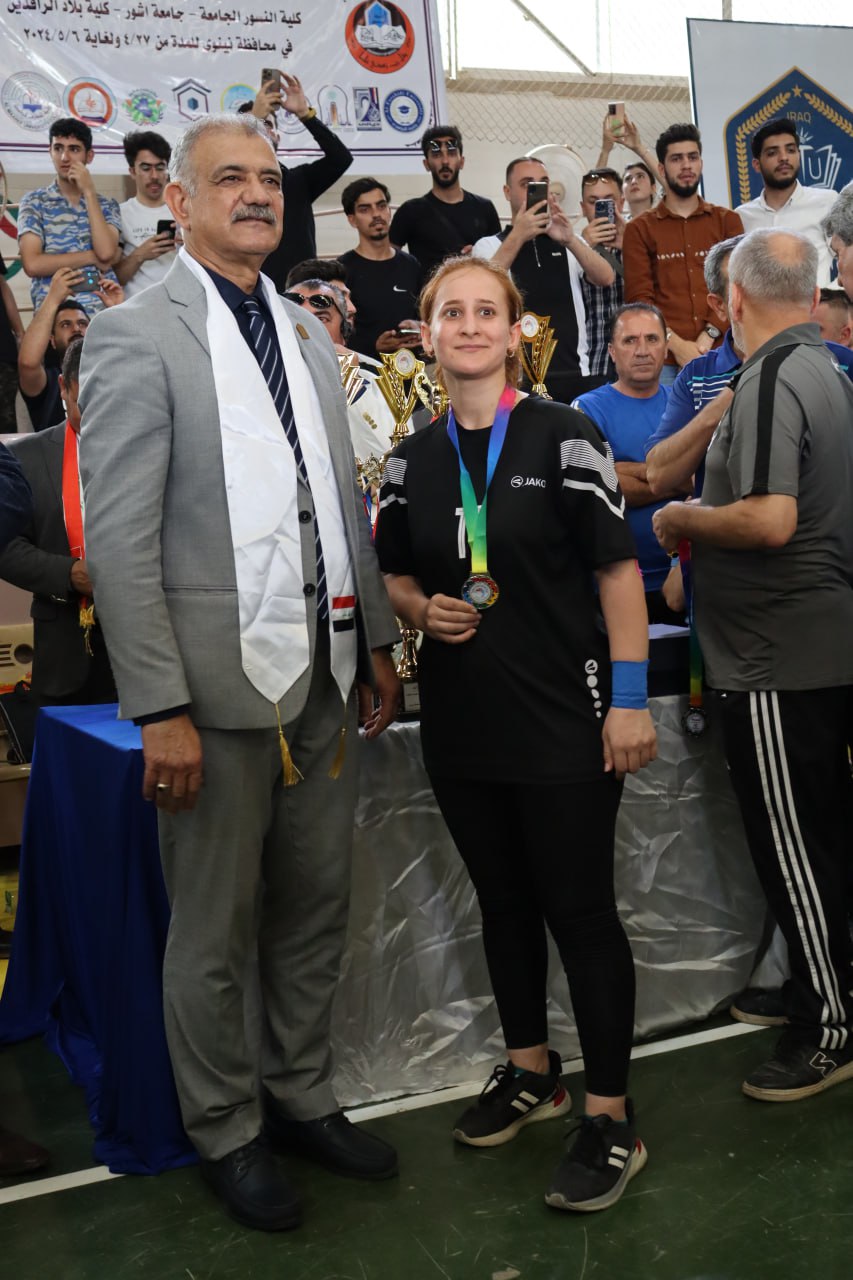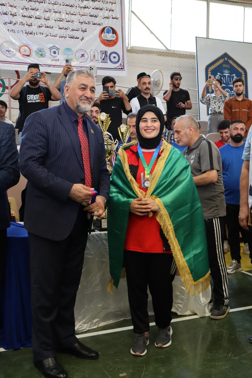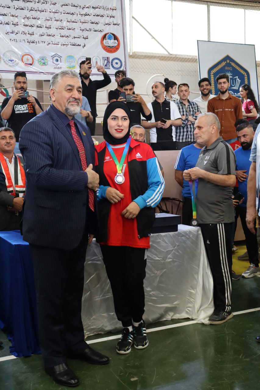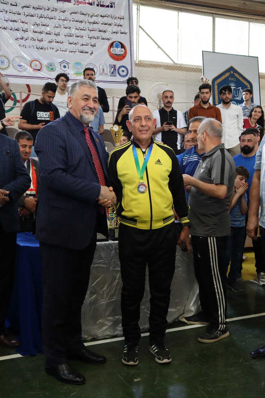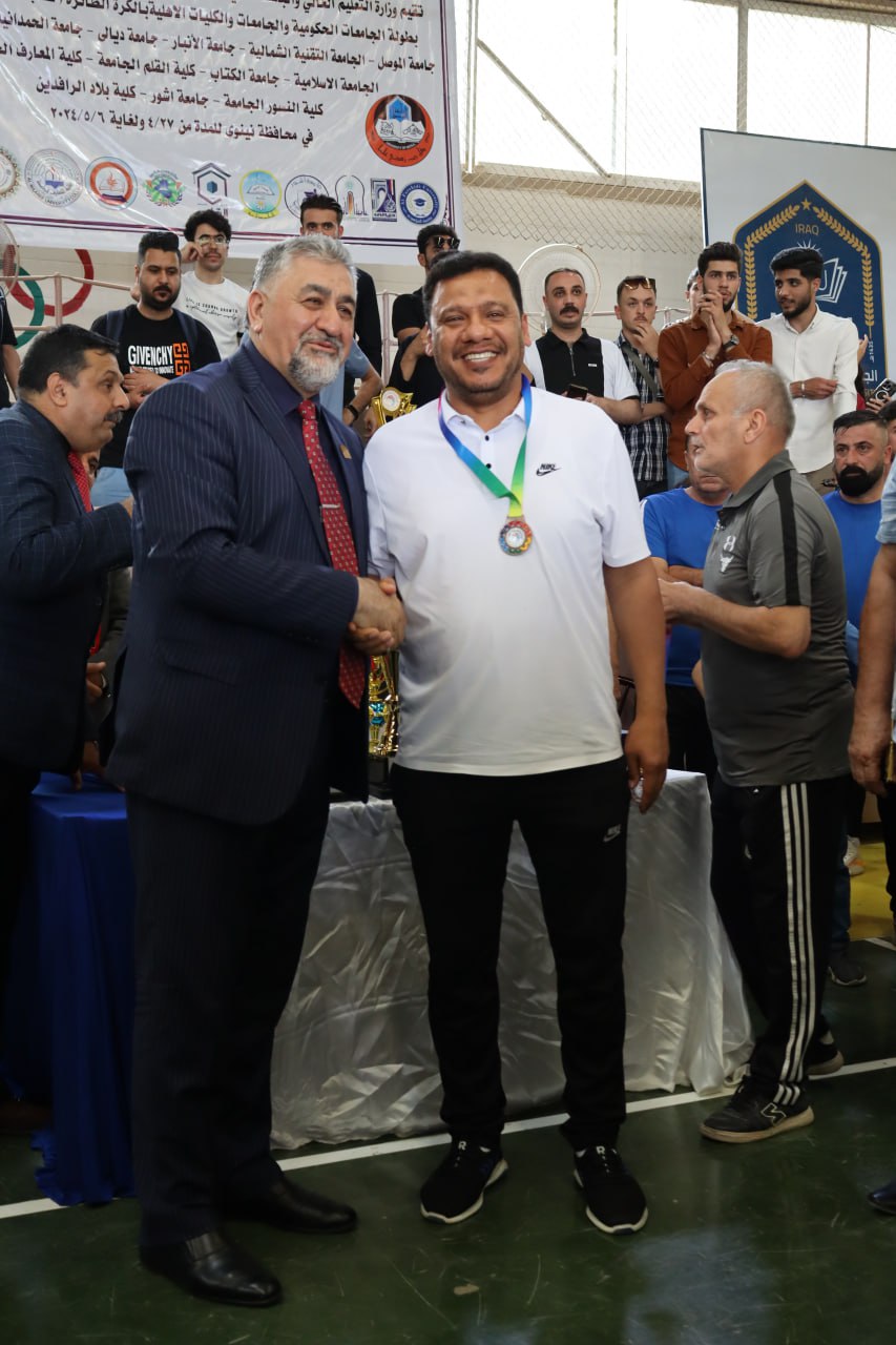 2024-05-07Part of honoring the winning teams at the conclusion of the Iraqi Universities and Private Colleges Volleyball Championship event (female students)….