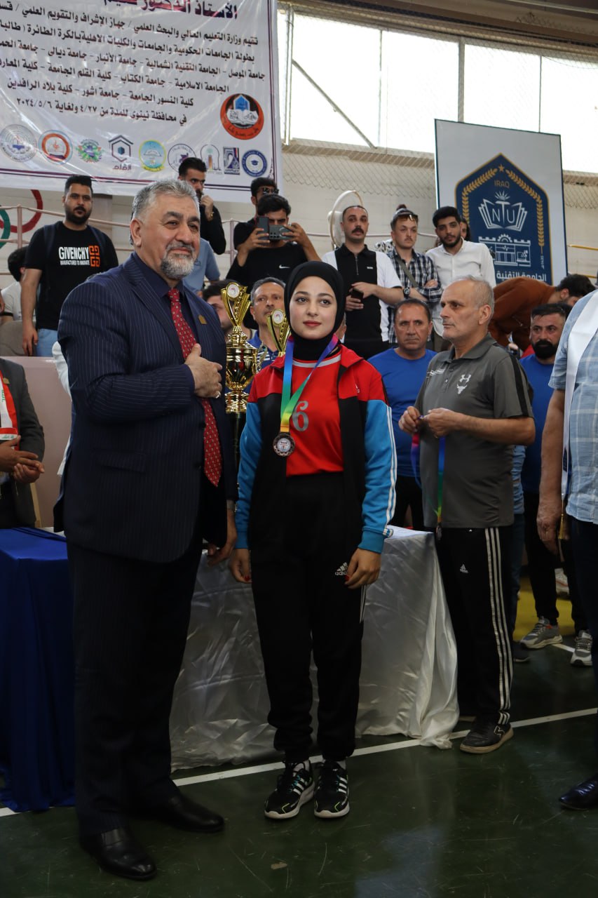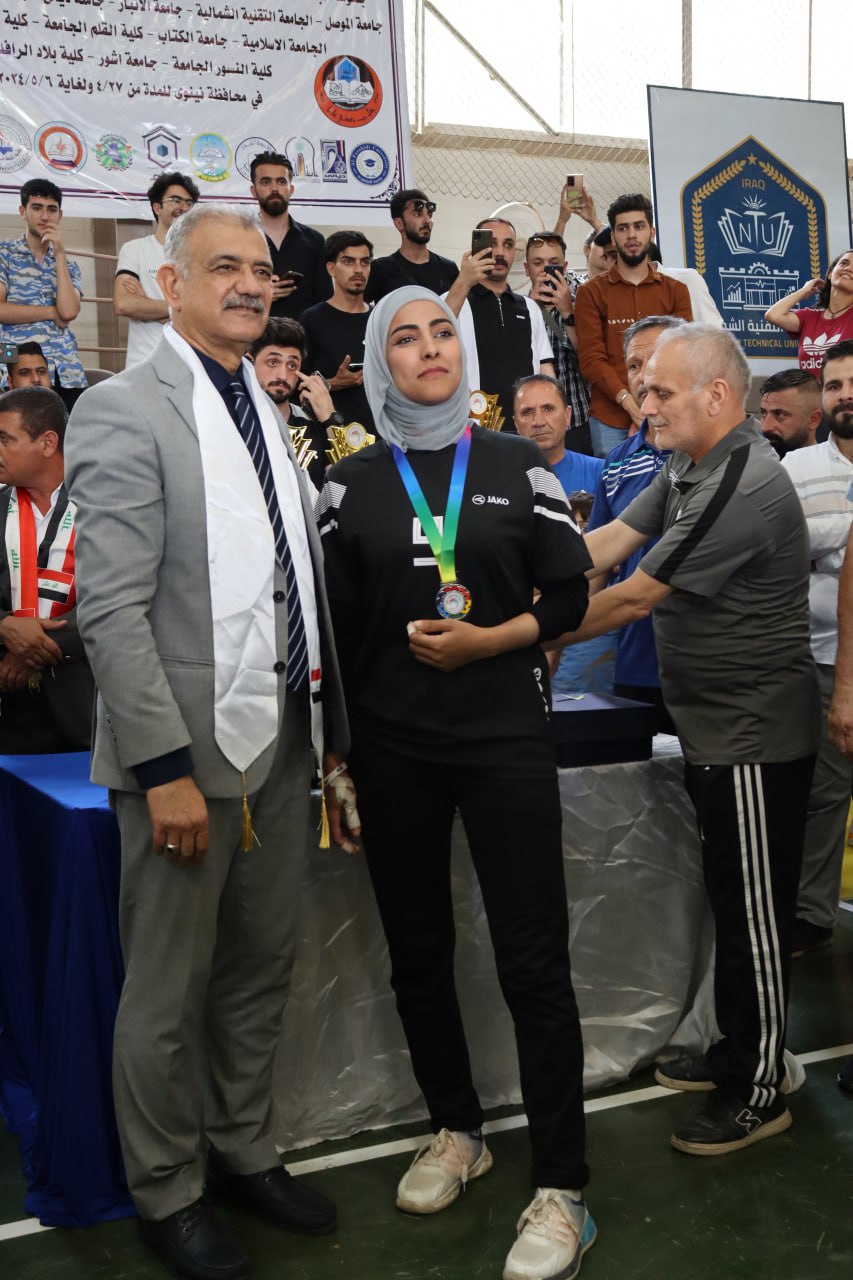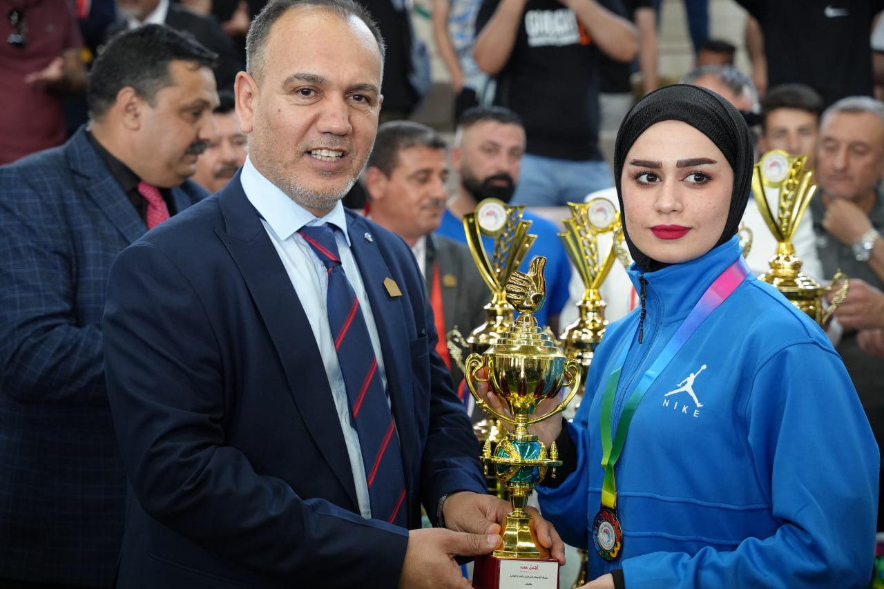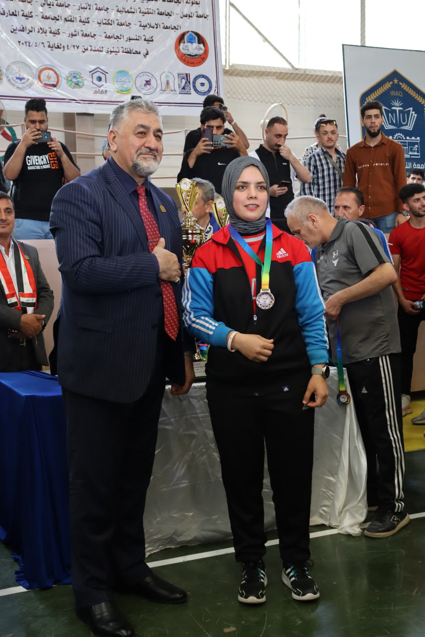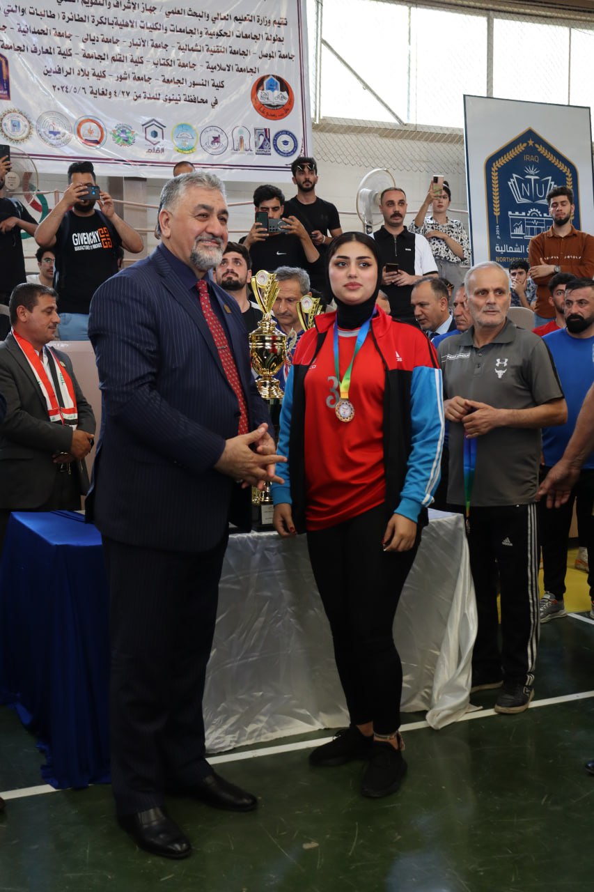 2024-05-07Part of honoring the winning teams at the conclusion of the Iraqi Universities and Private Colleges Volleyball Championship event (female students)….