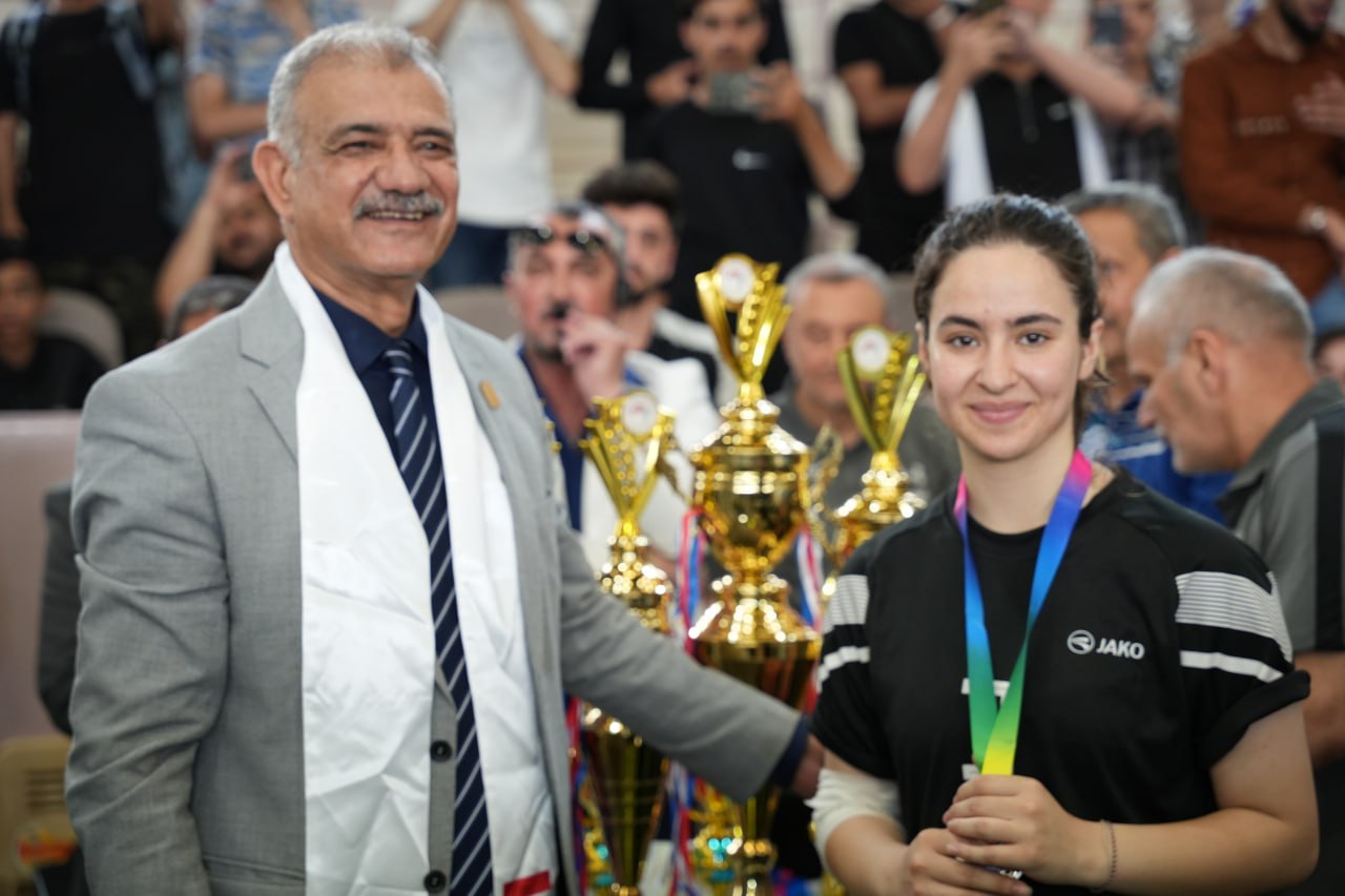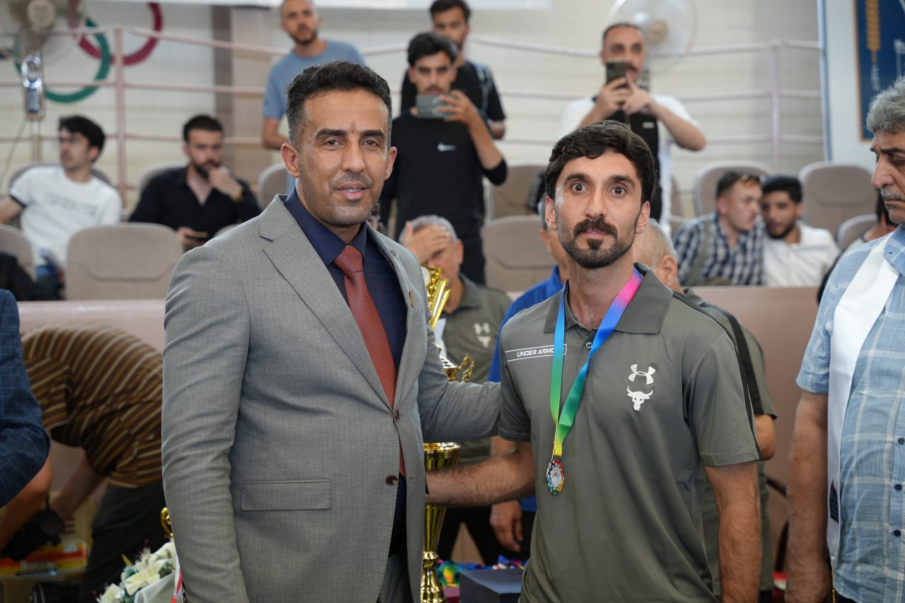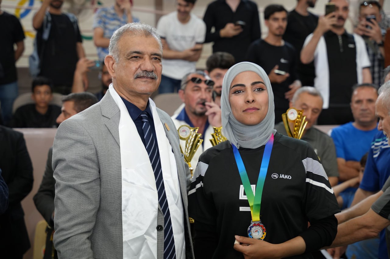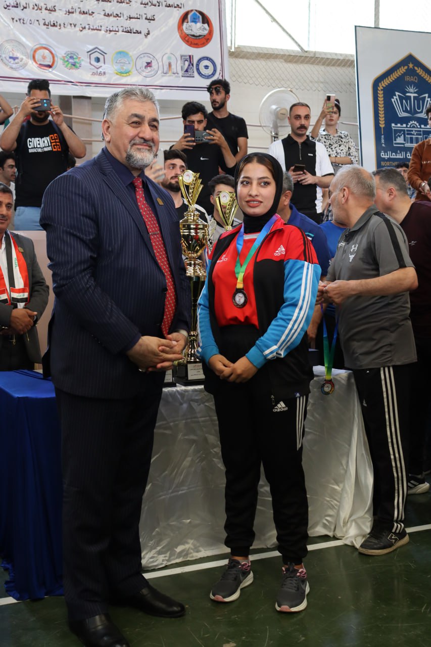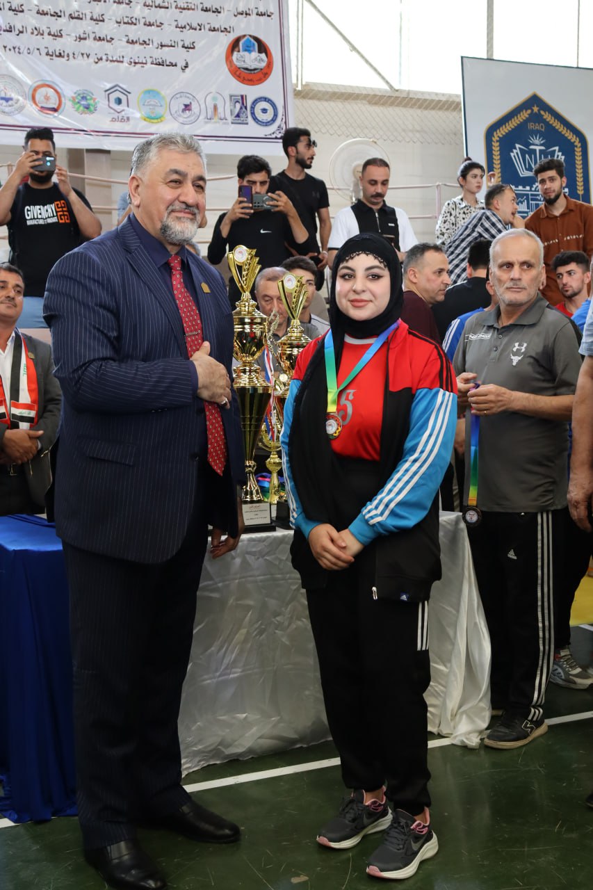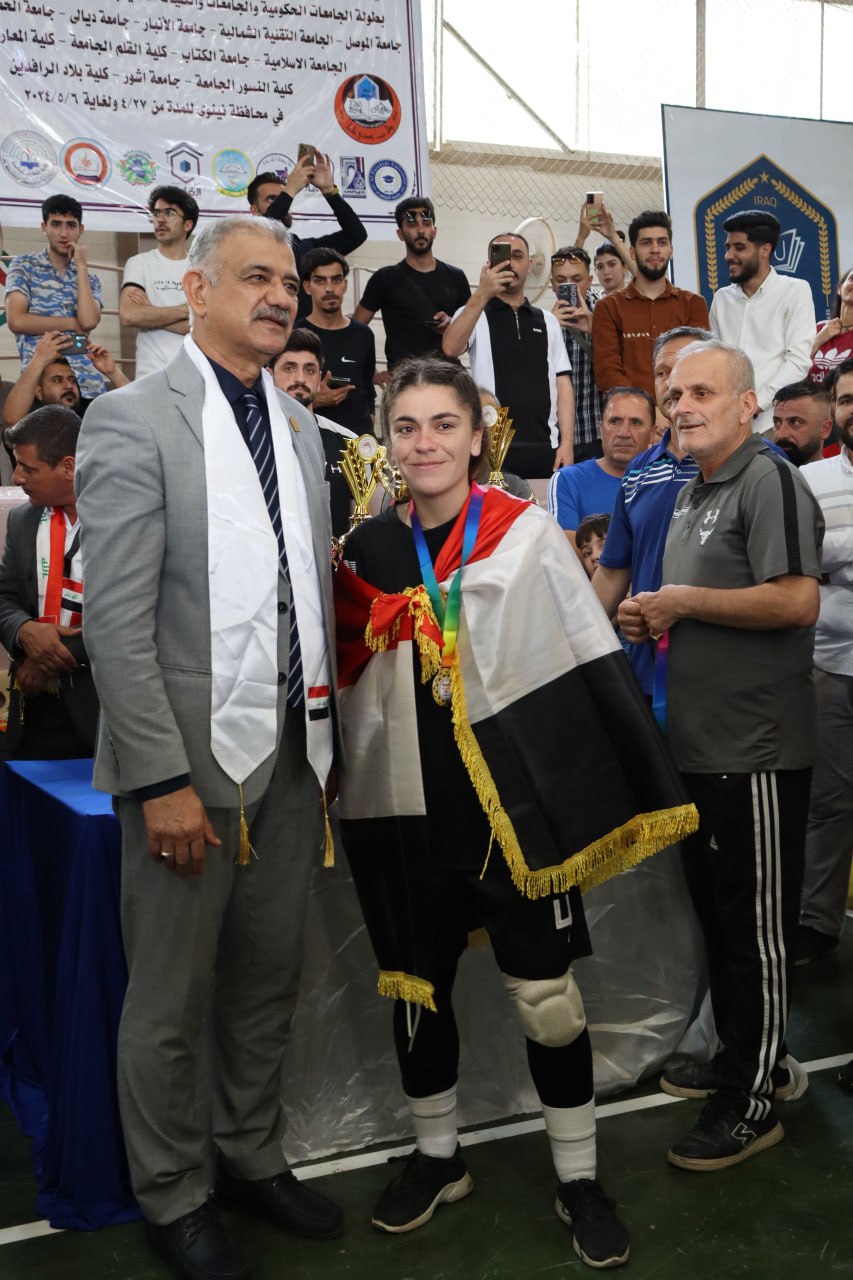 2024-05-07Part of honoring the winning teams at the conclusion of the Iraqi Universities and Private Colleges Volleyball Championship event (female students)….
