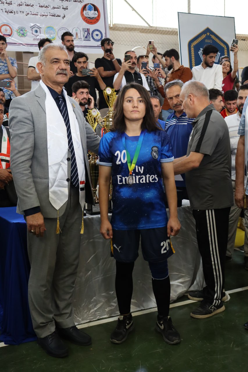 Part of honoring the winning teams at the conclusion of the Iraqi Universities and Private Colleges Volleyball Championship event (female students)….