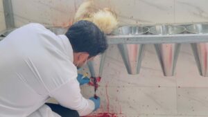 Poultry massacre at the College of Veterinary Medicine/University of Mosul to follow up on the implementation of the research plan of master’s student ‘Ali Abdel Moneim Muhammad Kanna’