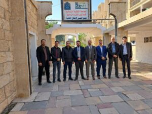 The visiting delegation consisted of the Deputy Dean for Academic Affairs and Students, Assistant Professor Dr. Ahmed Najm Sheet, Dr. Walid Khaled Shihab, Dr. Ahmed Sabih Yusuf, Mr. Adel Abdulaziz Aziz, Mr. Muayyad Abdulaziz Mahmoud, Mr. Mohammed Najib Saleh, and Mr. Zaid Abdulnafi.