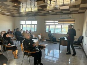The College of Administrative Technology is organizing a training course titled “Methods and Techniques of Scientific Research Writing” under the sponsorship of the respected President of Northern Technical University, Dr. Aliya Abbas Al-Attar, and the supervision of the respected Dean of the College of Administrative Technology in Mosul, Assistant Professor Dr. Samir Taha Yassin. The Department of Business Management Techniques in the college organized the training course for fourth-year students in the morning session. On its second day, the course focused on the topic of “Introduction to the Principles of Scientific Research.” It shed light on the important aspects of research methodology and emphasized the preparation and design of questionnaires as well as writing the dimensions of research variables. The session was delivered by Assistant Lecturer Mohammed Najib Al-Banna.